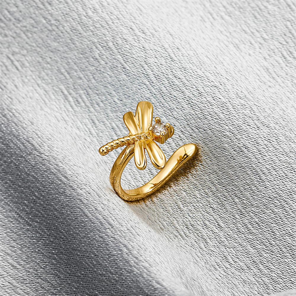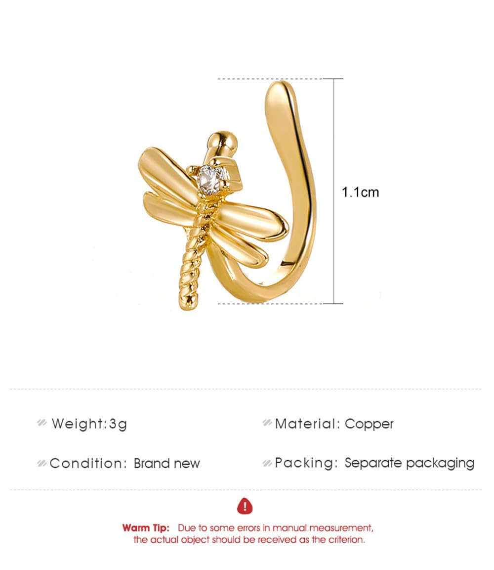 幸運を象徴するトンボモチーフのレディースイヤーカフ。ジルコニアが輝きを添える上品なデザインで、耳にしっかりフィットするU字型構造。ピアスホール不要で、簡単に装着・取り外し可能。カラーはゴールドとシルバーから選べ、カジュアルにもフォーマルにも合わせやすい。誕生日や恋人の日のプレゼントにもおすすめ。