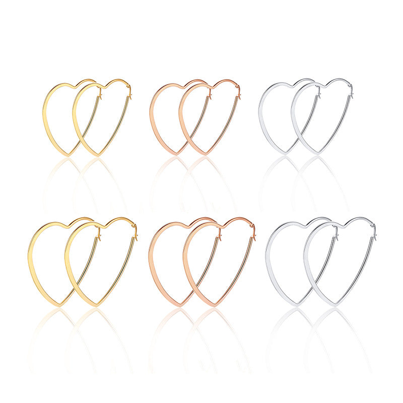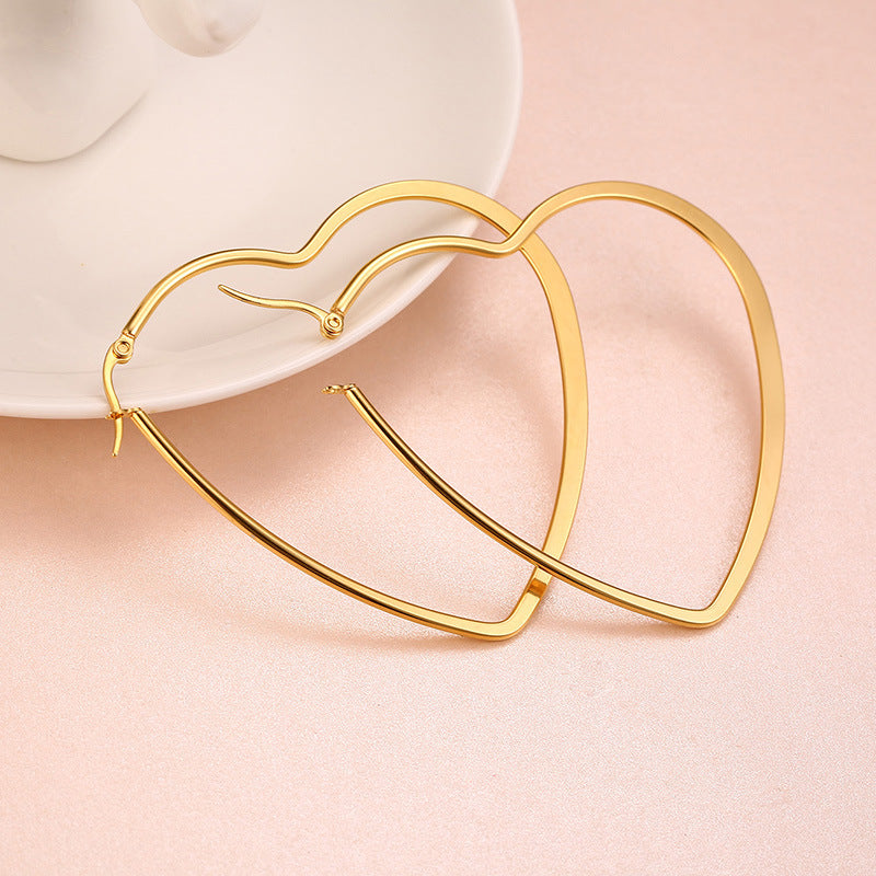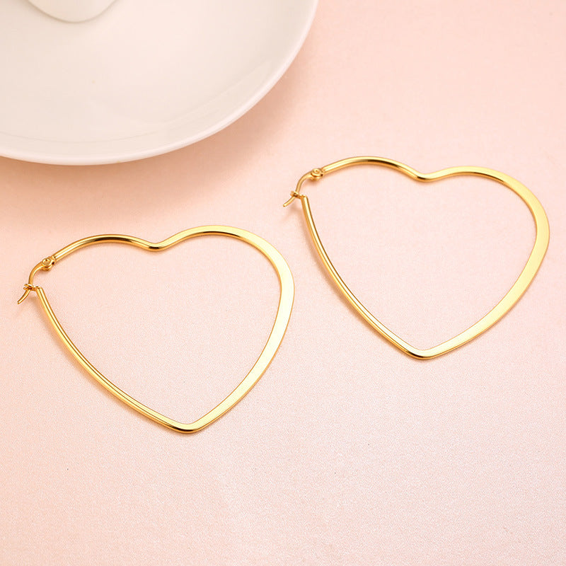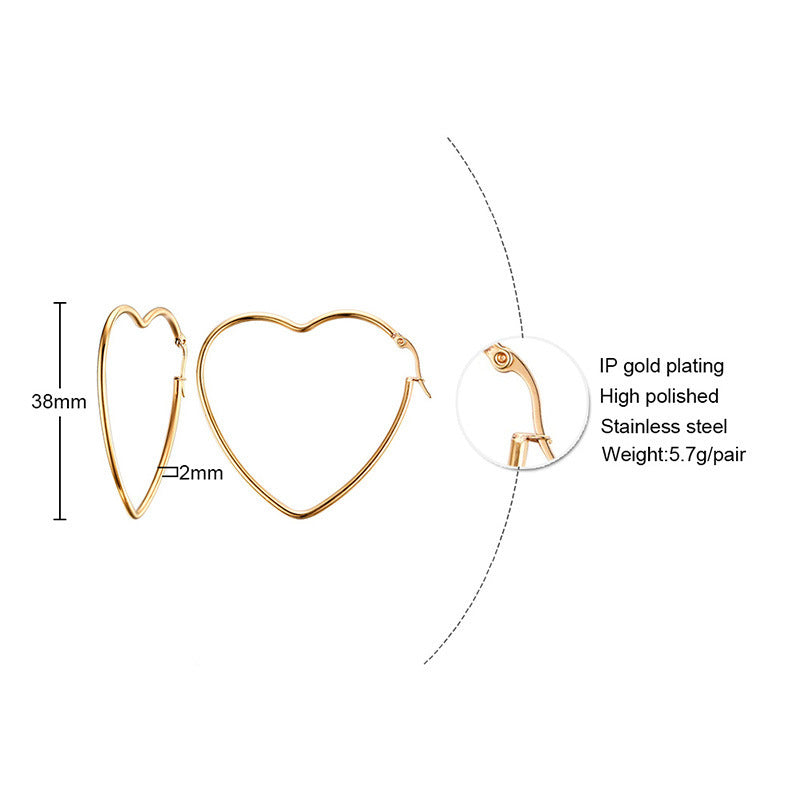 Rockyu オープンハート フープピアス 大ぶり レディース アレルギー対応 18Kコーティング シンプル おしゃれ