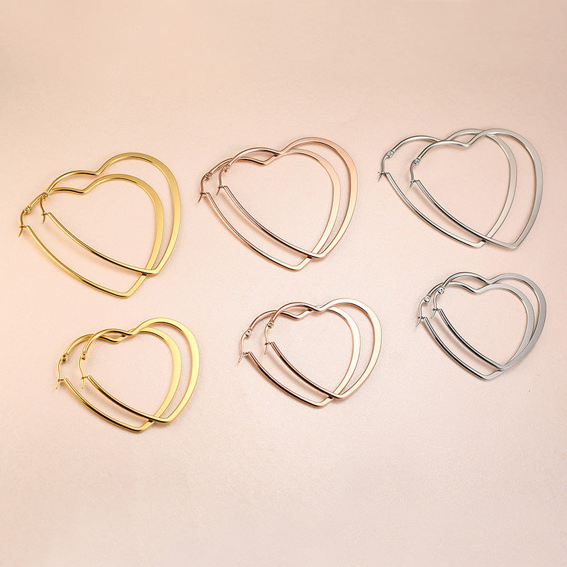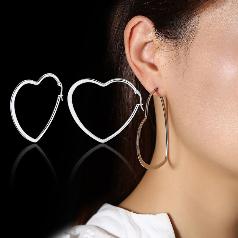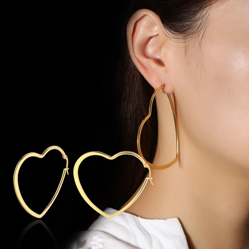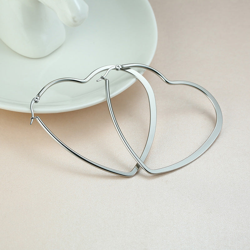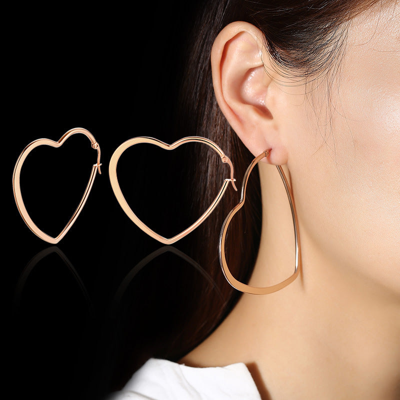 Rockyu が贈る「オープンハート フープピアス」は、大人の女性にふさわしい遊び心と洗練を兼ね備えたアイテム。38mmの大ぶりシルエットが耳元で存在感を放ちながら、ハート型の抜け感が軽やかで上品な印象を演出します。
