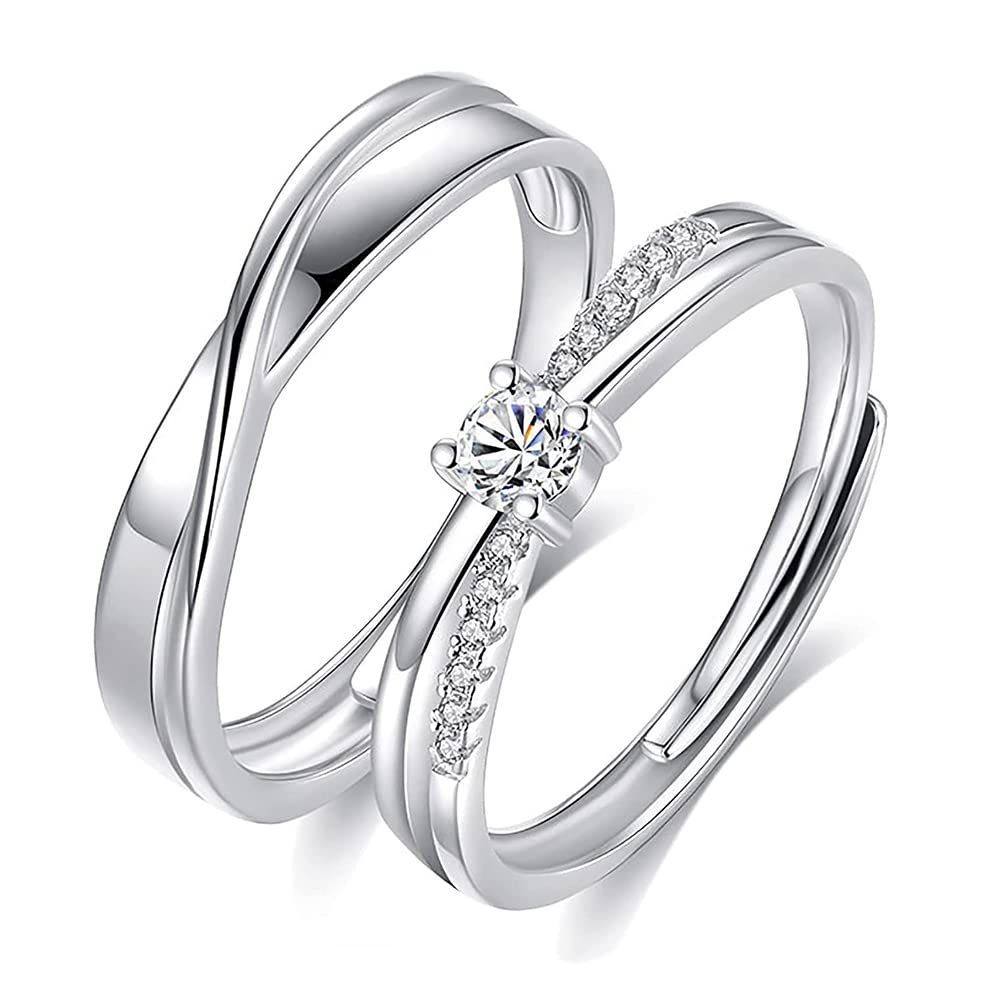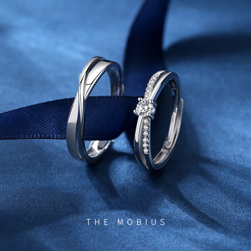 Rockyu メビウス ペアリング 一粒ダイヤ シルバー925 指輪 フリーサイズ