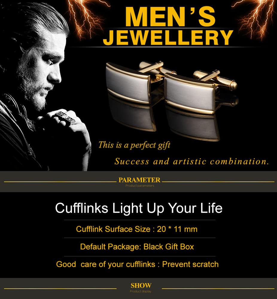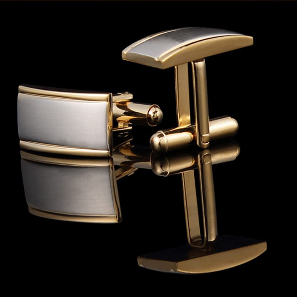 Rockyu カフスボタン メンズ おしゃれ 長方形 シルバー×ゴールド 二色 サテン加工 ビジネス 紳士カフリンクス