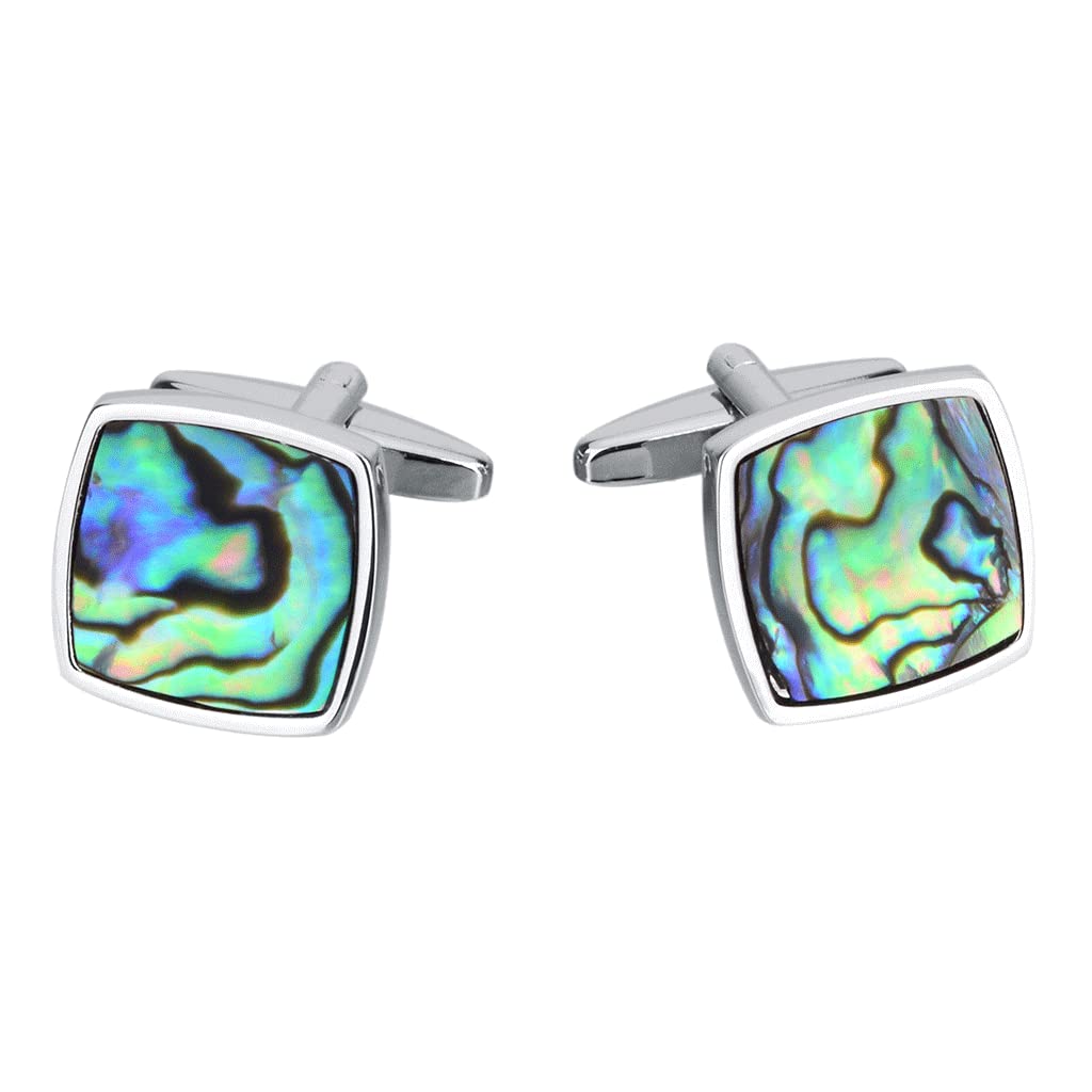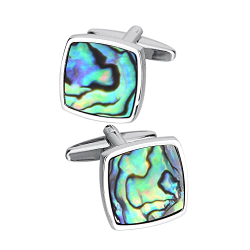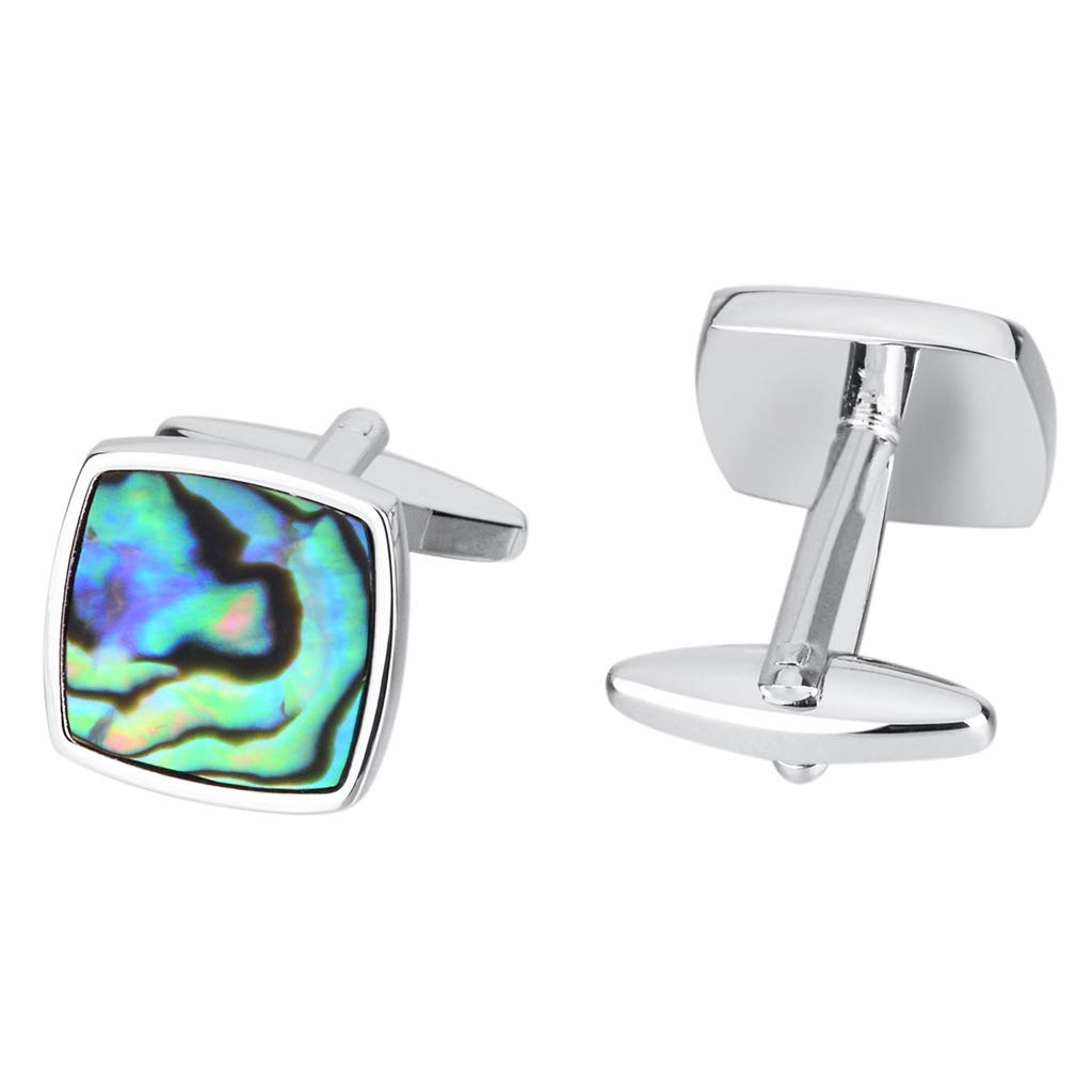 Rockyu 天然貝殻カフスボタン メンズ 正方形デザイン シルバーフレーム ビジネス&フォーマル