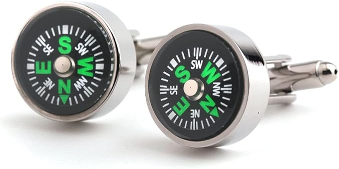方向音痴なあなたも、ビジネスの世界では常に“北を指す”男に。Rockyu のラウンドコンパスカフスは、ユーモラスでありながらもしっかりとスタイリッシュ。シャツの袖元にさりげなく遊び心をプラスしつつ、フォーマルシーンにも溶け込むデザインです。シルバー合金の光沢がきらめき、ラウンド型のコンパスフェイスが視線を集めること間違いなし。