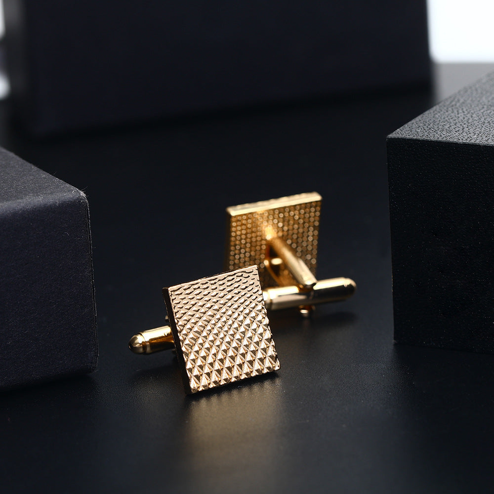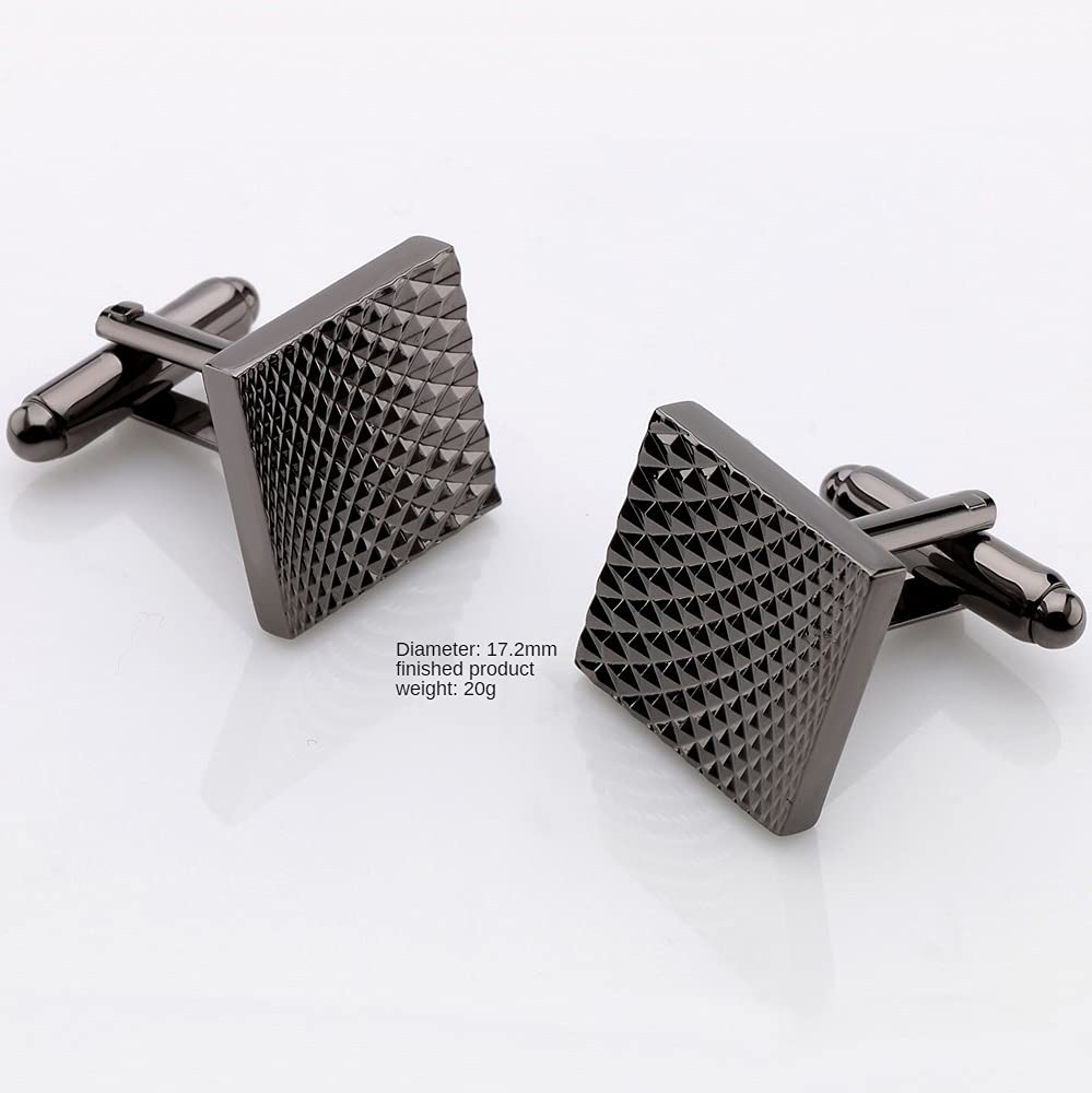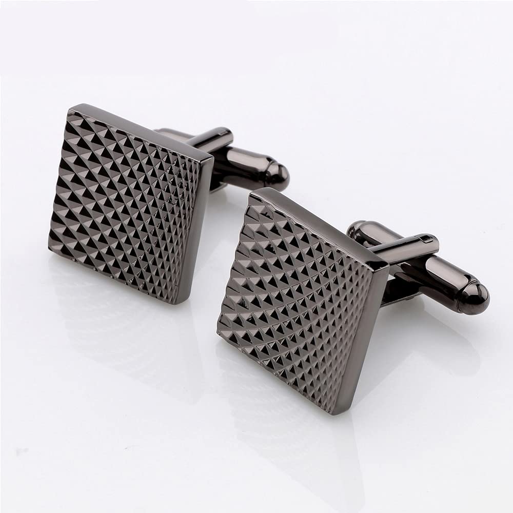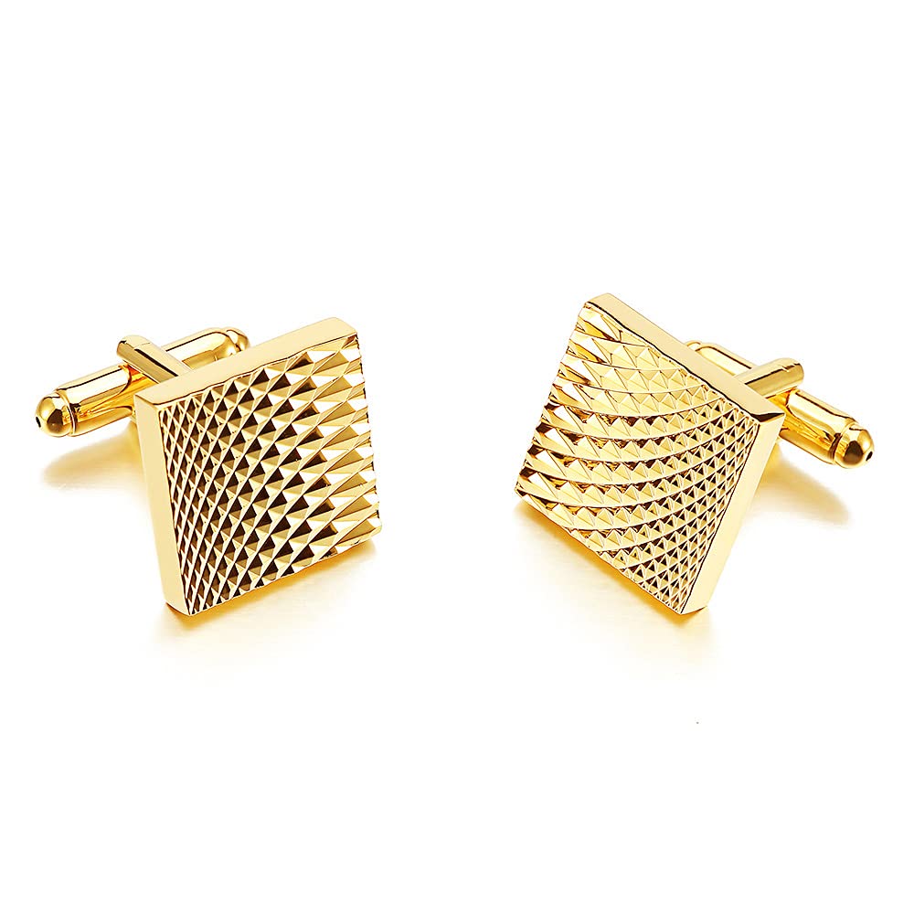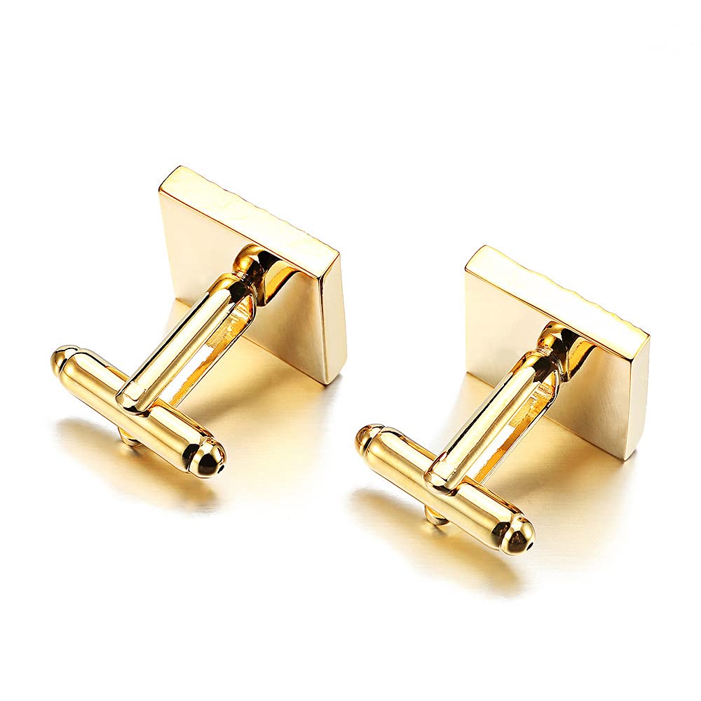 Rockyu メンズカフス 正方形デザインカフリンクス ブラック ゴールド ステンレス