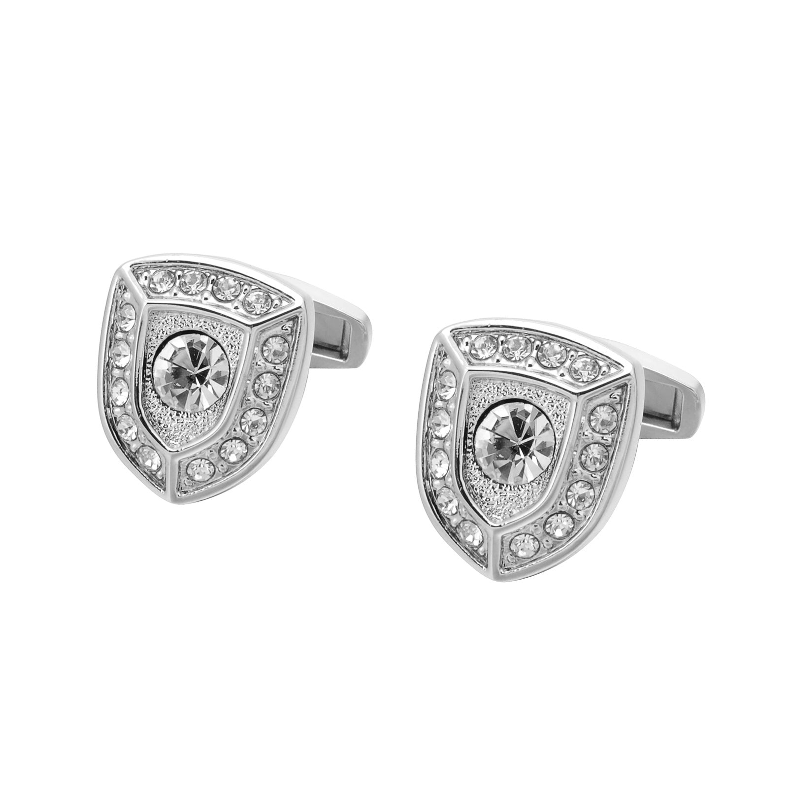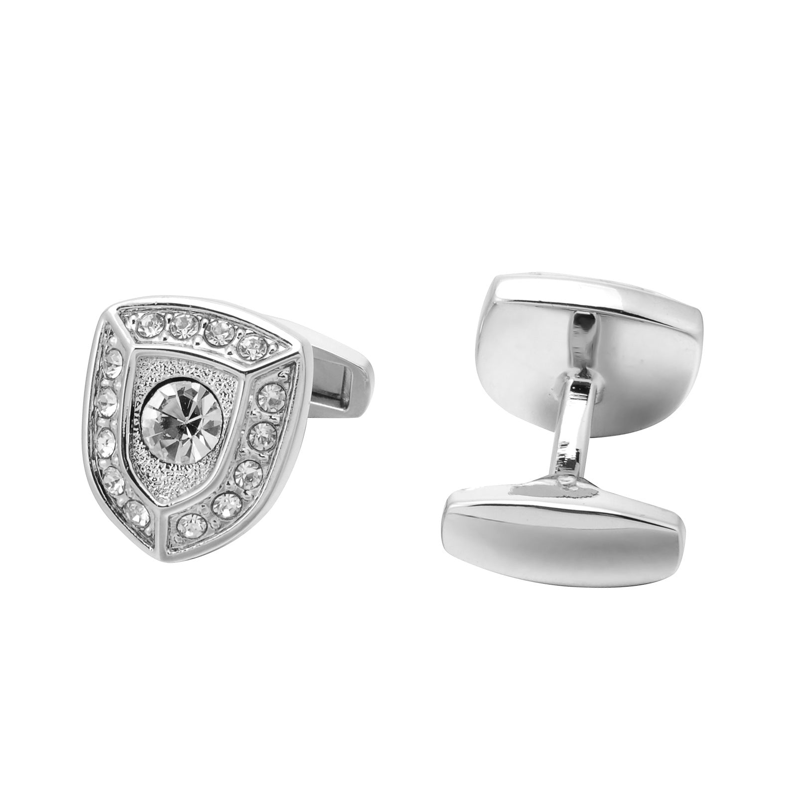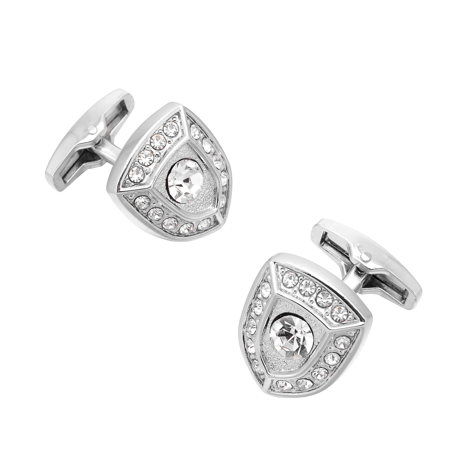 Rockyu カフス メンズ 盾型 シルバー ジルコニア ステンレス アンティーク風