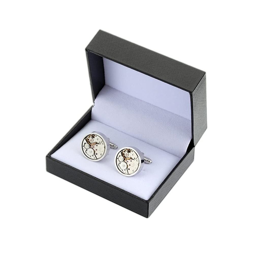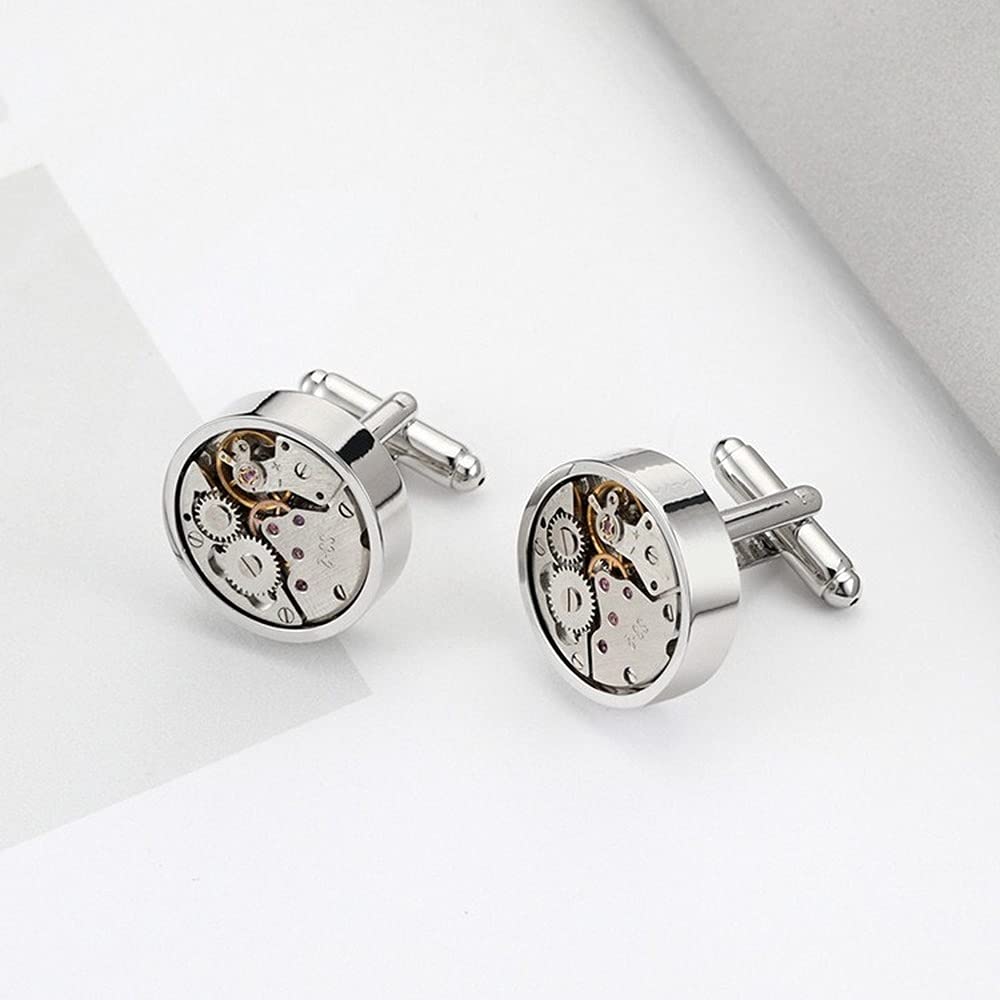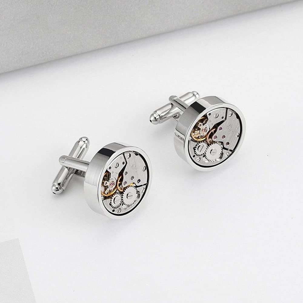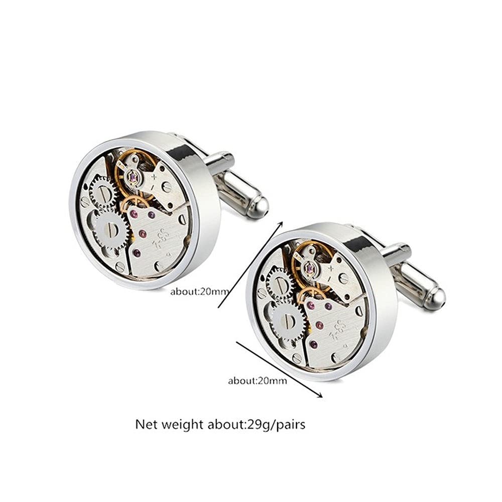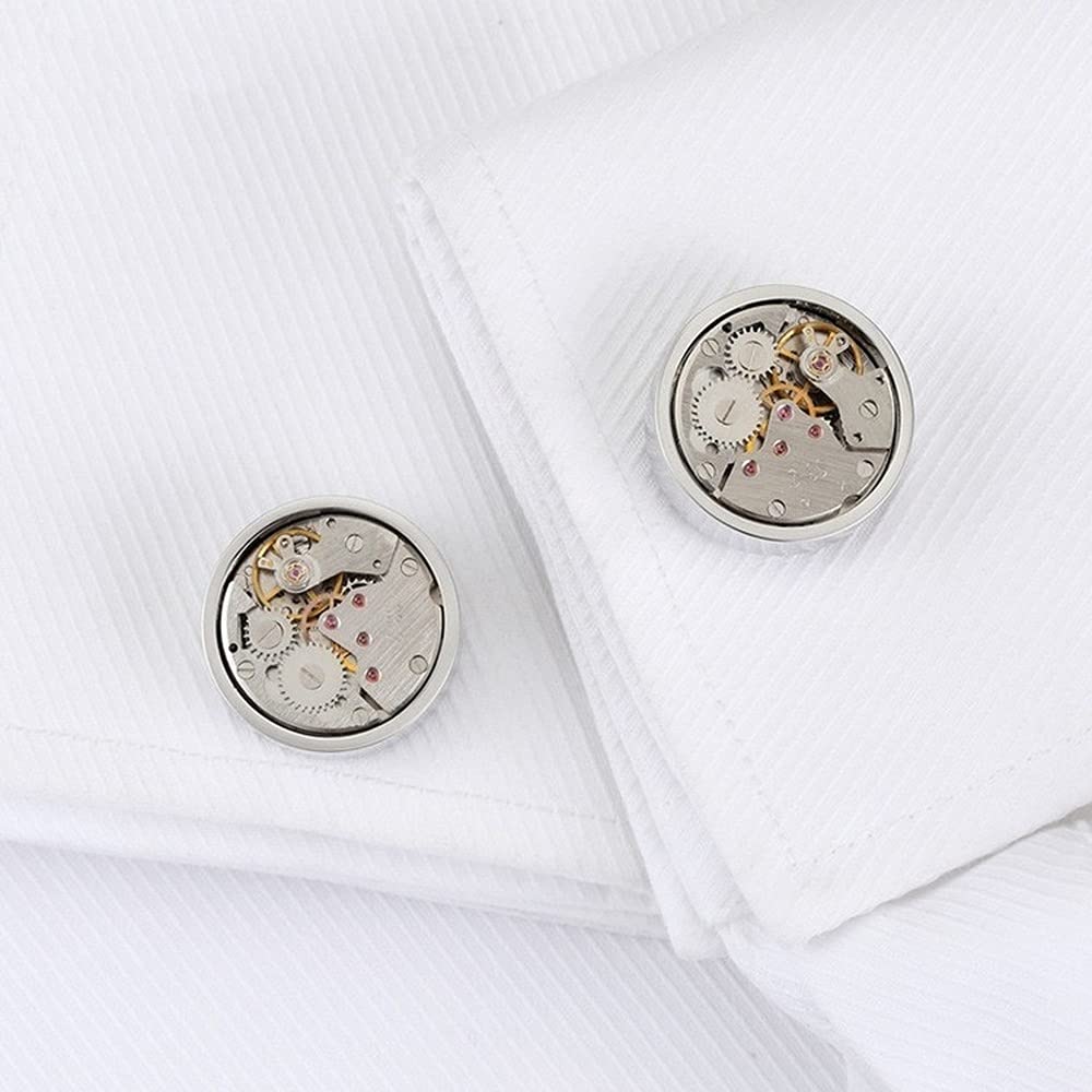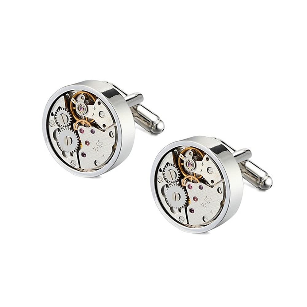 Rockyu メンズカフス 時計ムーブメント風メカニカルラウンドカフス シルバー
