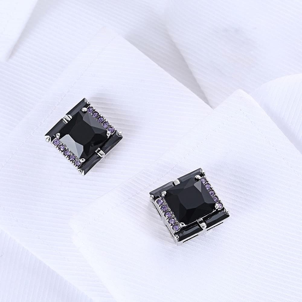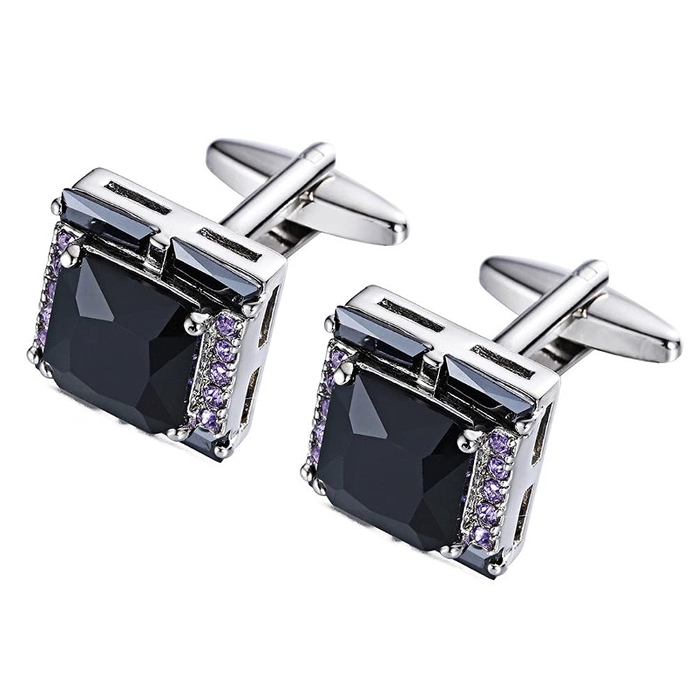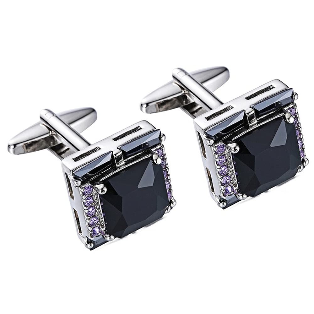 Rockyu メンズカフス ブラックオニキス風ストーンと紫ジルコニアの正方形カフリンクス