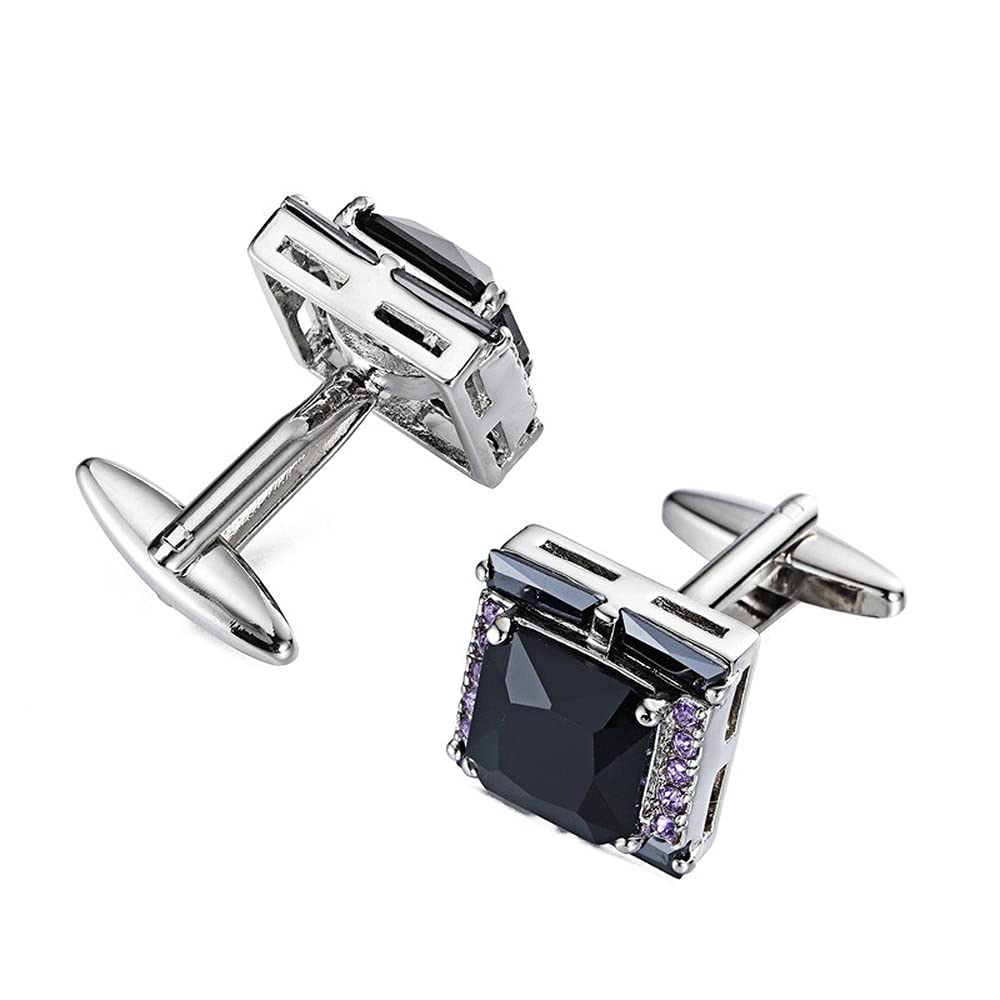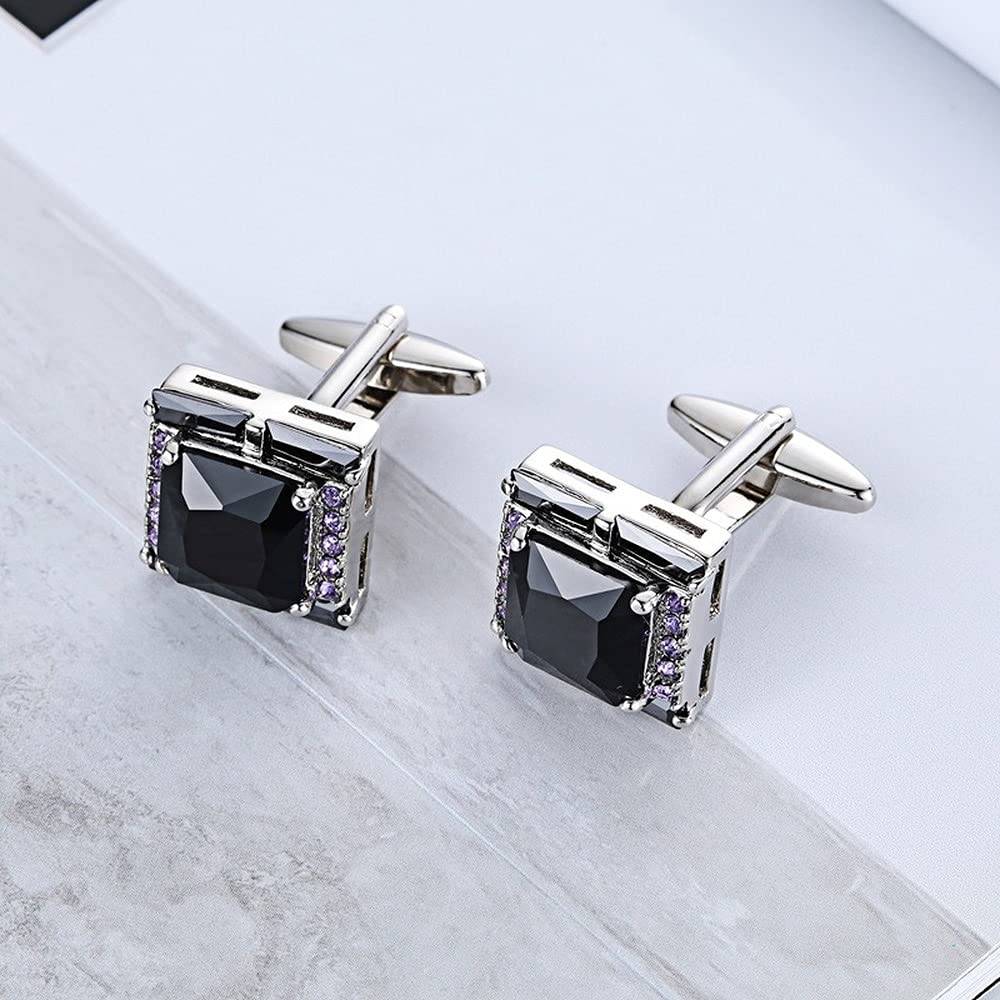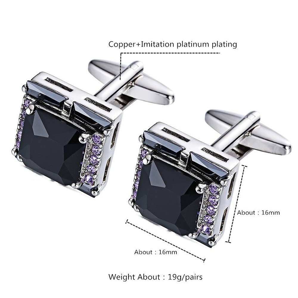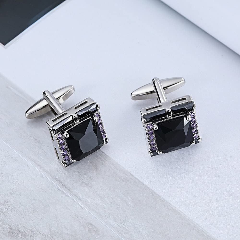 Rockyu メンズカフス ブラックオニキス風ストーンと紫ジルコニアの正方形カフリンクス