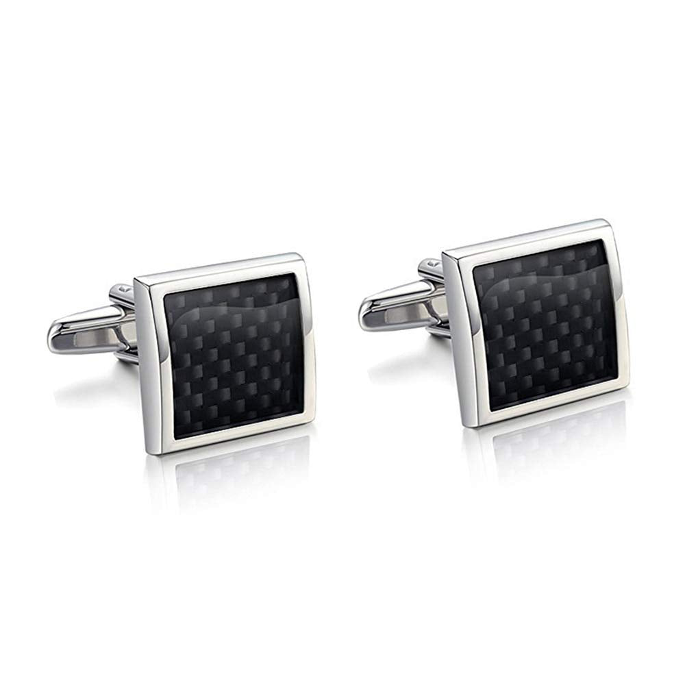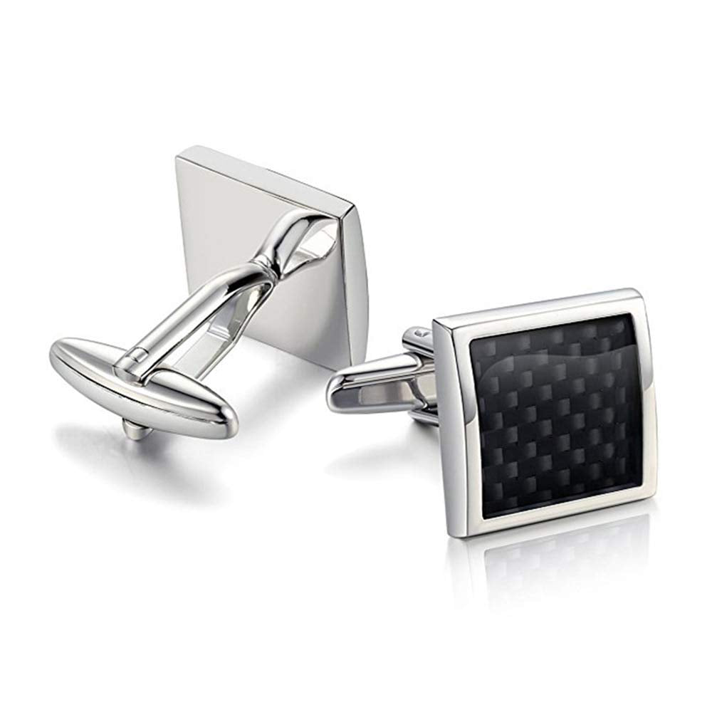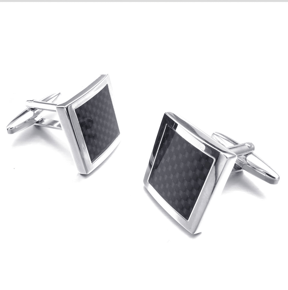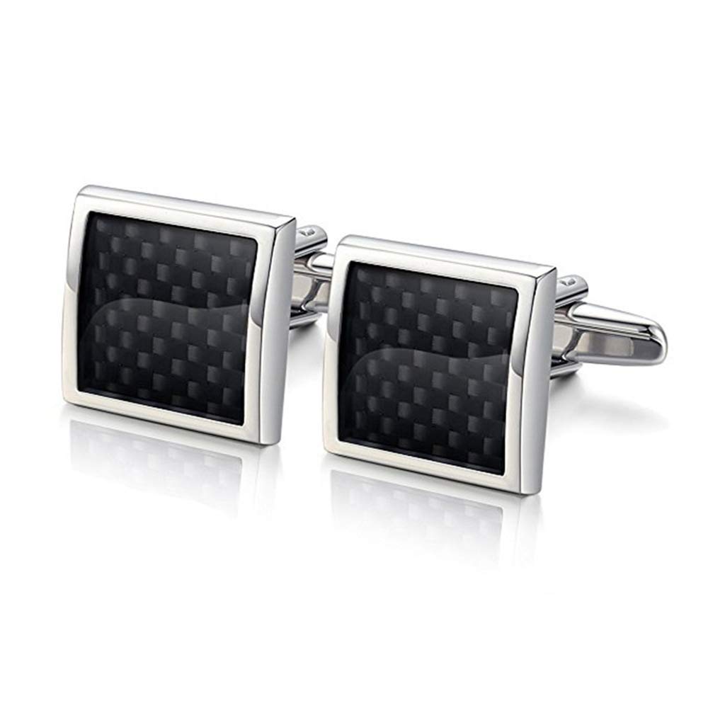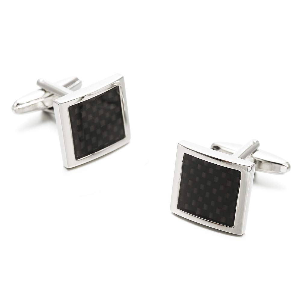 Rockyu メンズカフス カーボン調 正方形デザイン シルバー×ブラック ビジネス&フォーマル
