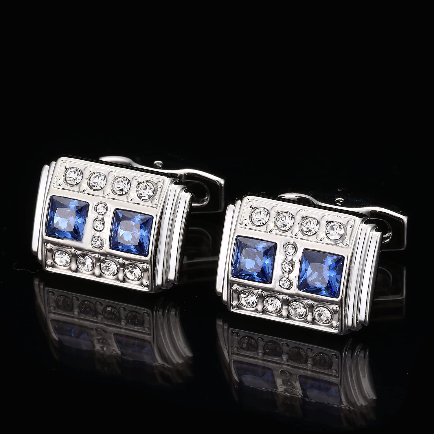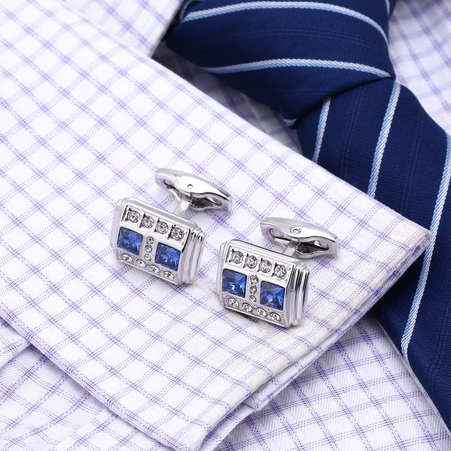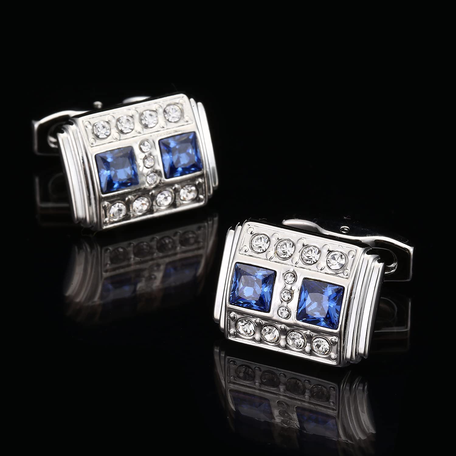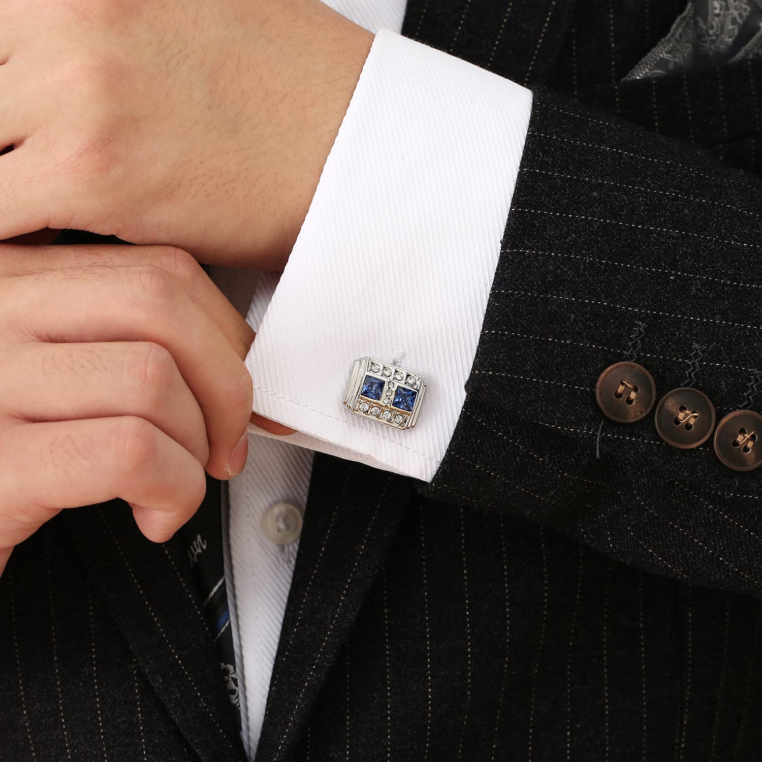 Rockyu メンズカフス スクエアカットジルコニア付きクラシックデザインカフリンクス