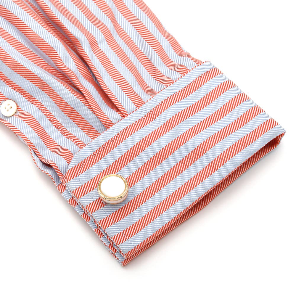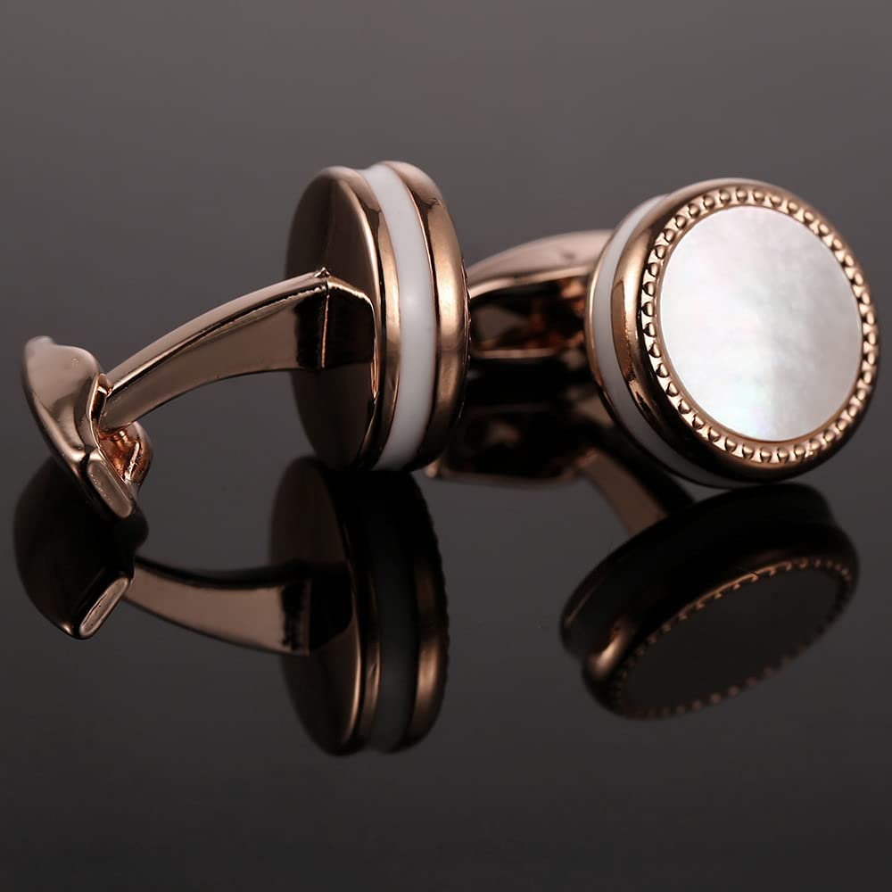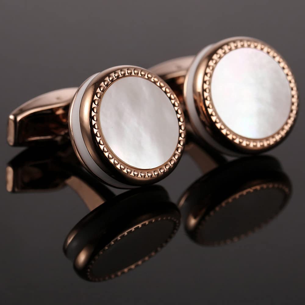 Rockyu メンズ 白蝶貝カフス ピンクゴールド ラウンドデザイン ステンレス製