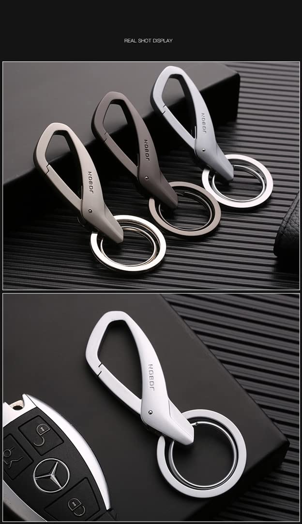 亜鉛合金を採用した頑丈な作りで、錆びにくく色あせしにくい耐久性を実現。しかも軽量なので持ち歩きやすく、車の鍵やバイクの鍵、家の鍵までまとめてスマートに管理できます。カラーはシルバー、グレー、ブラックの3色展開。スーツスタイルにもカジュアルファッションにも自然に馴染む万能さが魅力です。