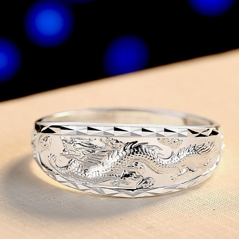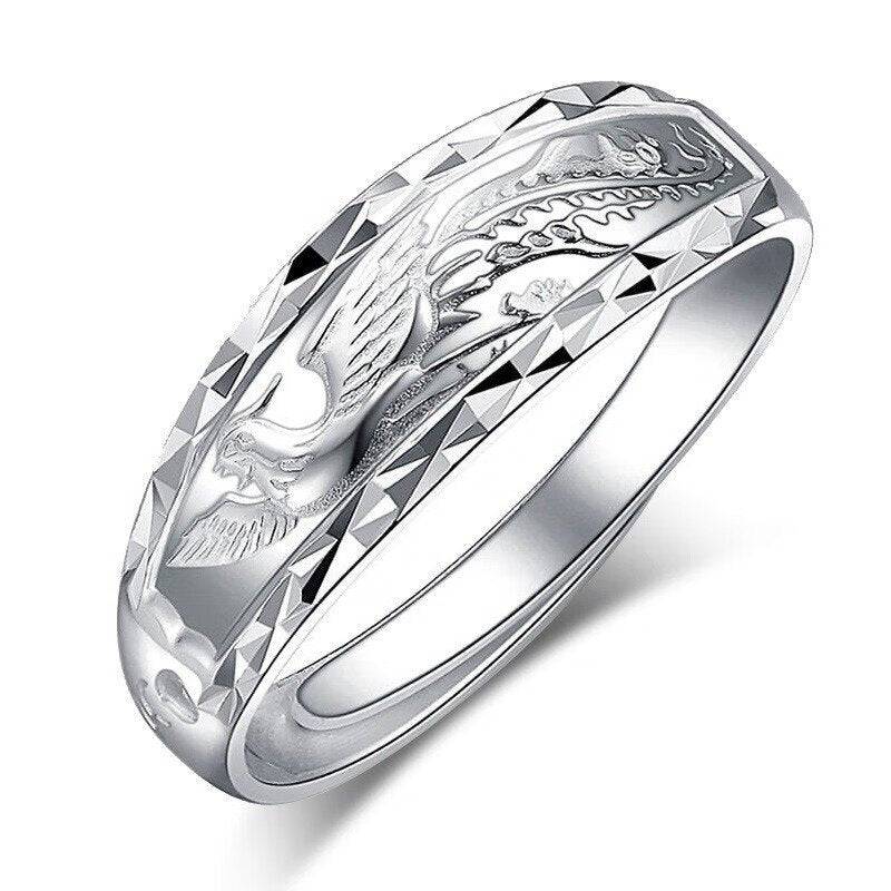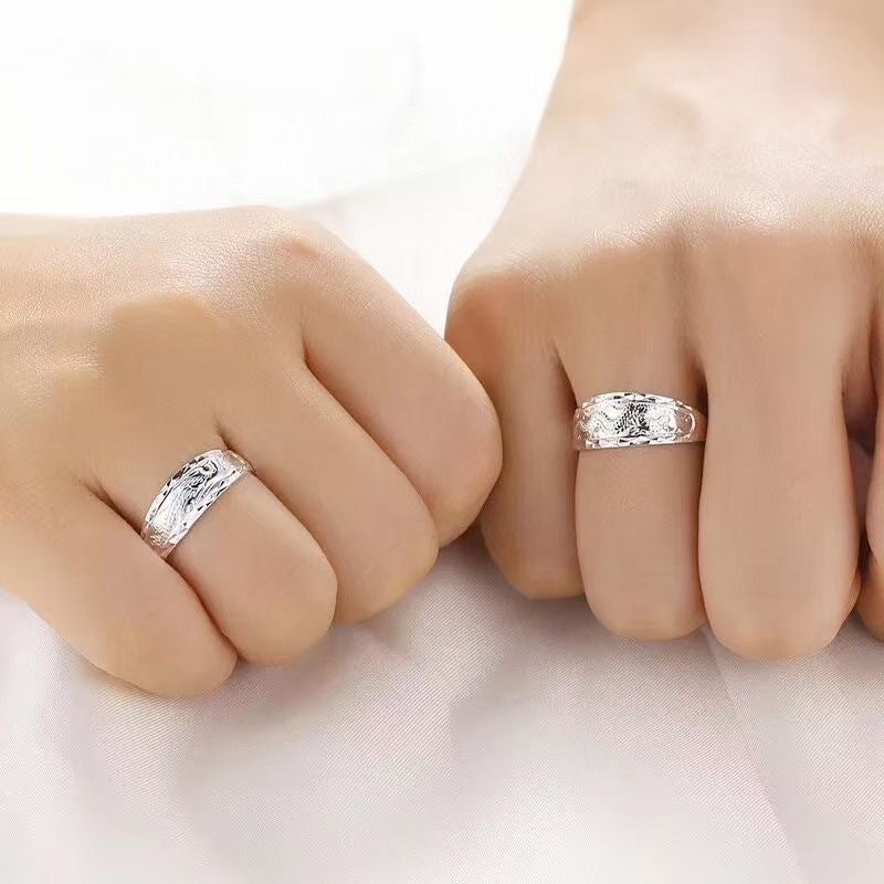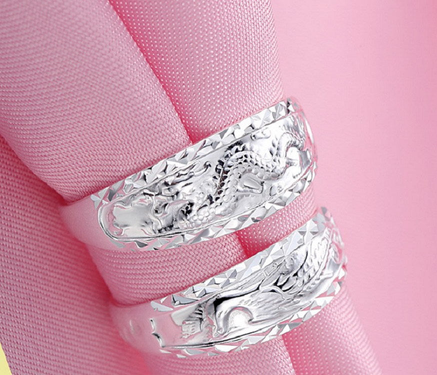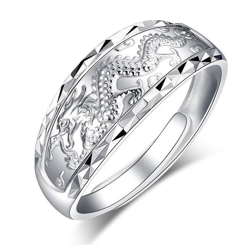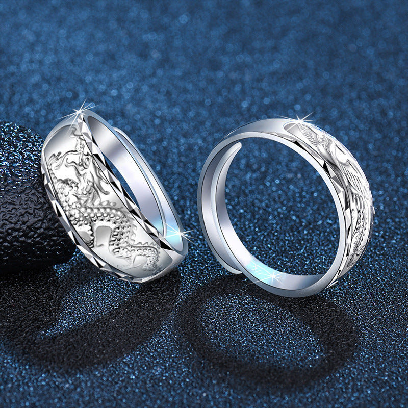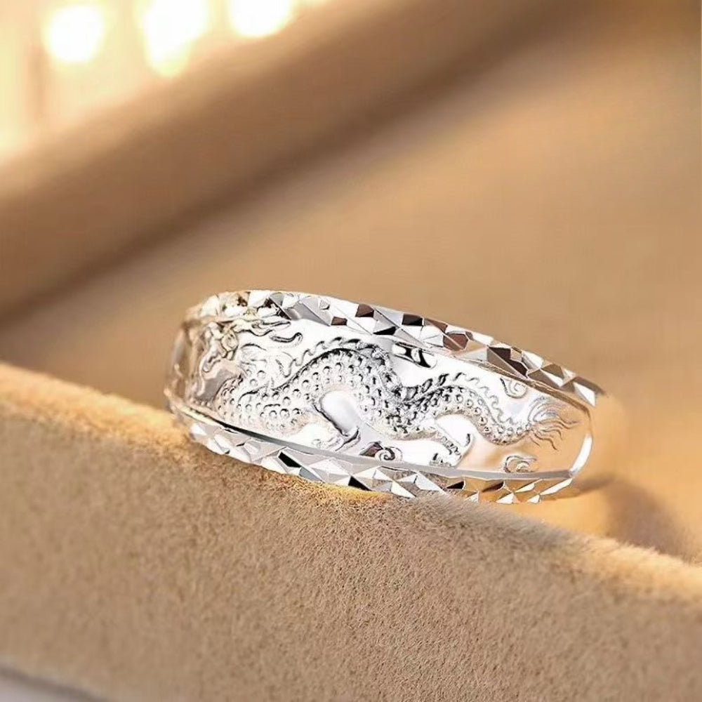 Rockyu シルバー999 指輪 メンズ 龍鳳彫刻 フリーサイズ リング