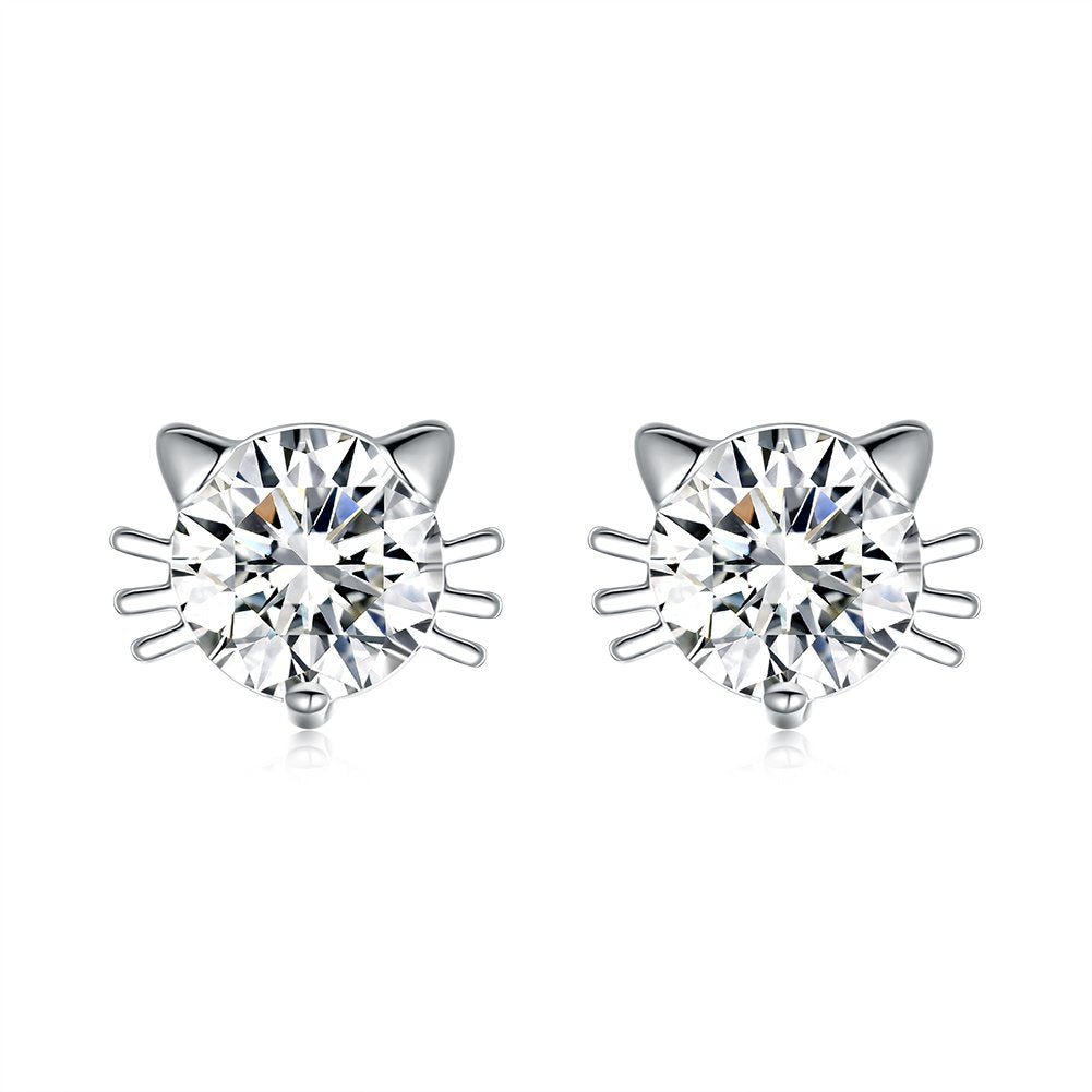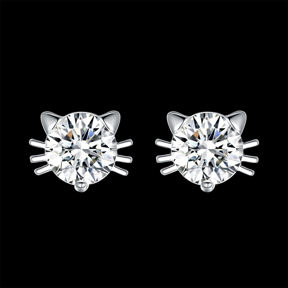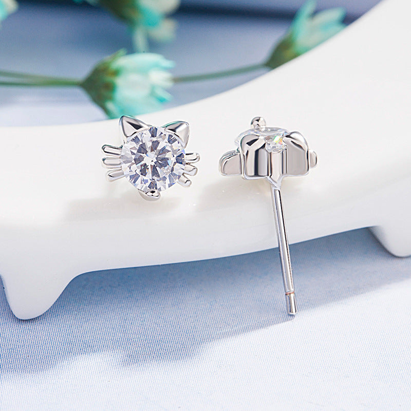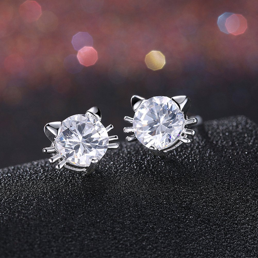 きらめく猫モチーフピアス|ジルコン×シルバーメッキの愛されスタッドLKNSPCE942-fa
