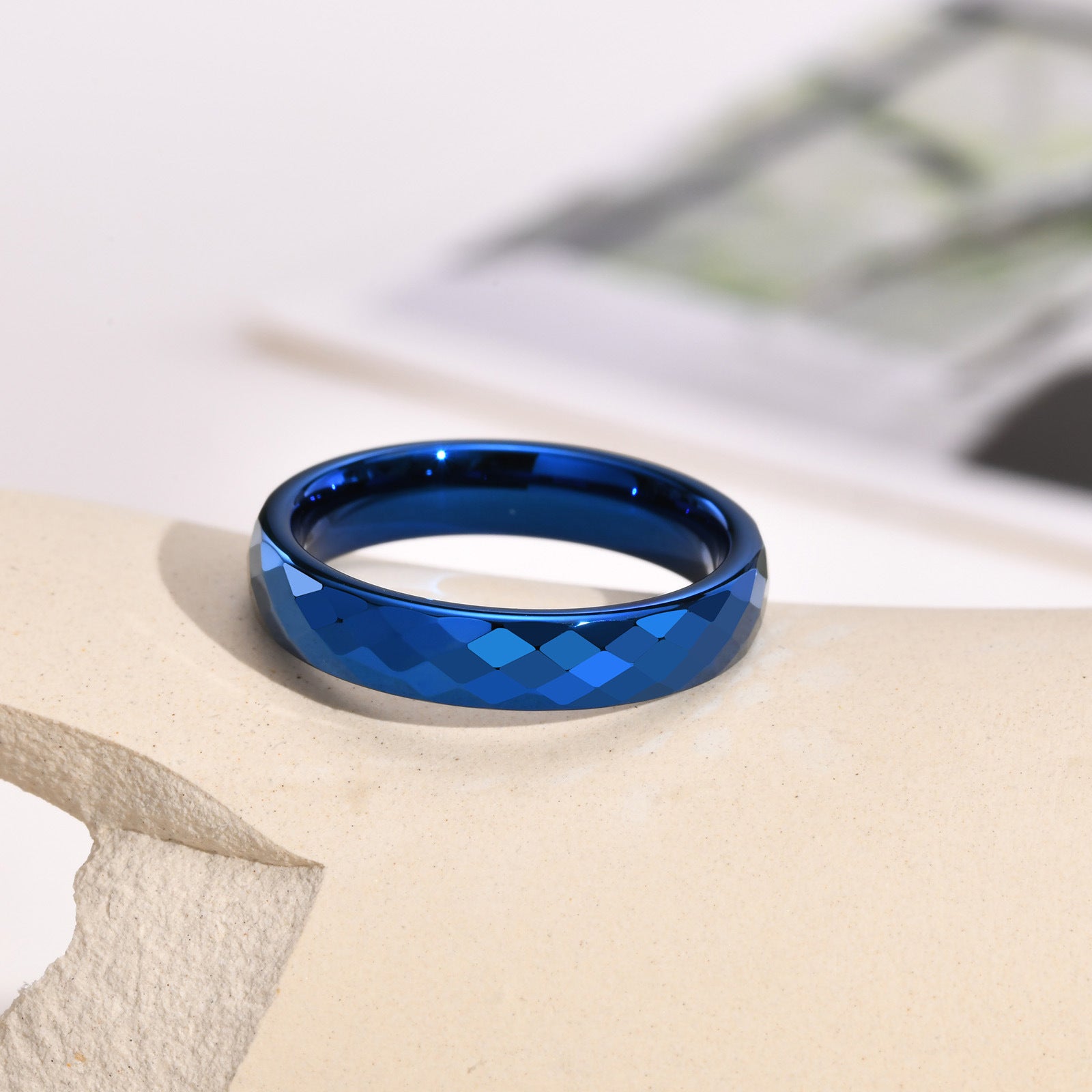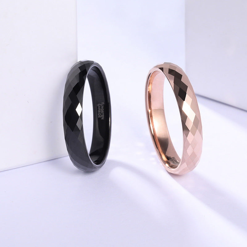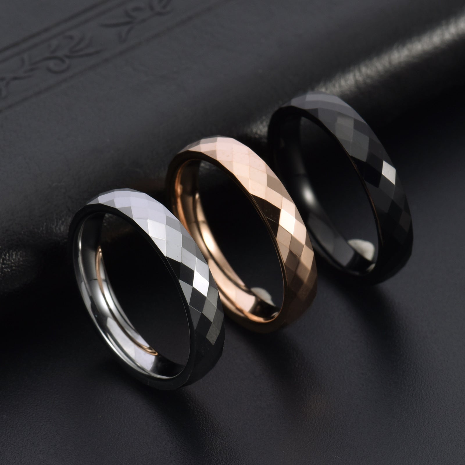 Rockyu タングステン 多面カットリング 4mm メンズ レディース 指輪 シルバー ゴールド ブルー ピンクゴールド 鏡面&マット仕上げ 男女兼用