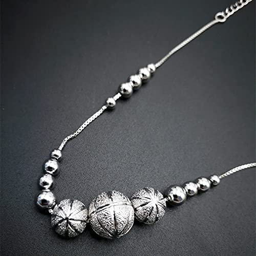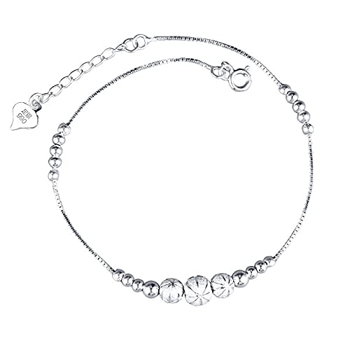 S990純銀製アンクレット レディース|煌めく中空ビーズ&ハートチャーム付