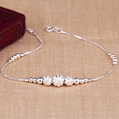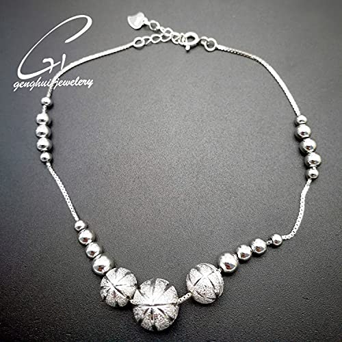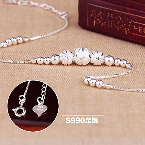S990純銀製アンクレット レディース|煌めく中空ビーズ&ハートチャーム付Anklet-JL006