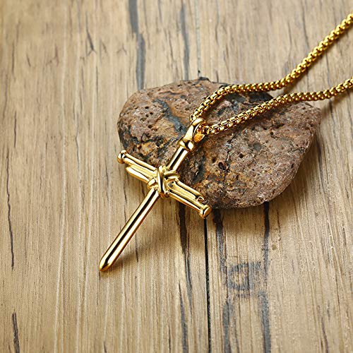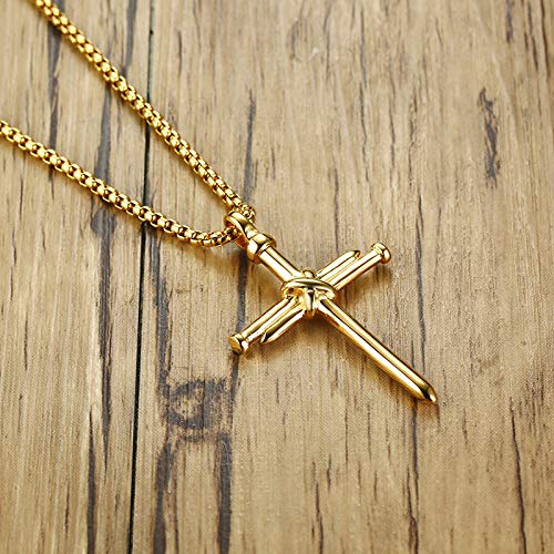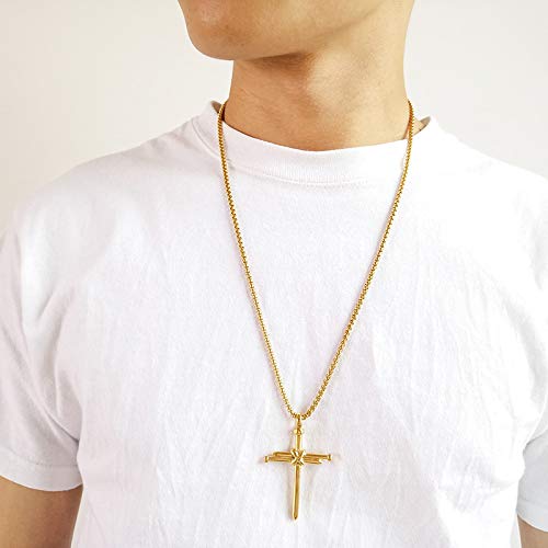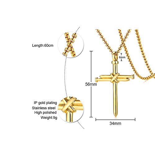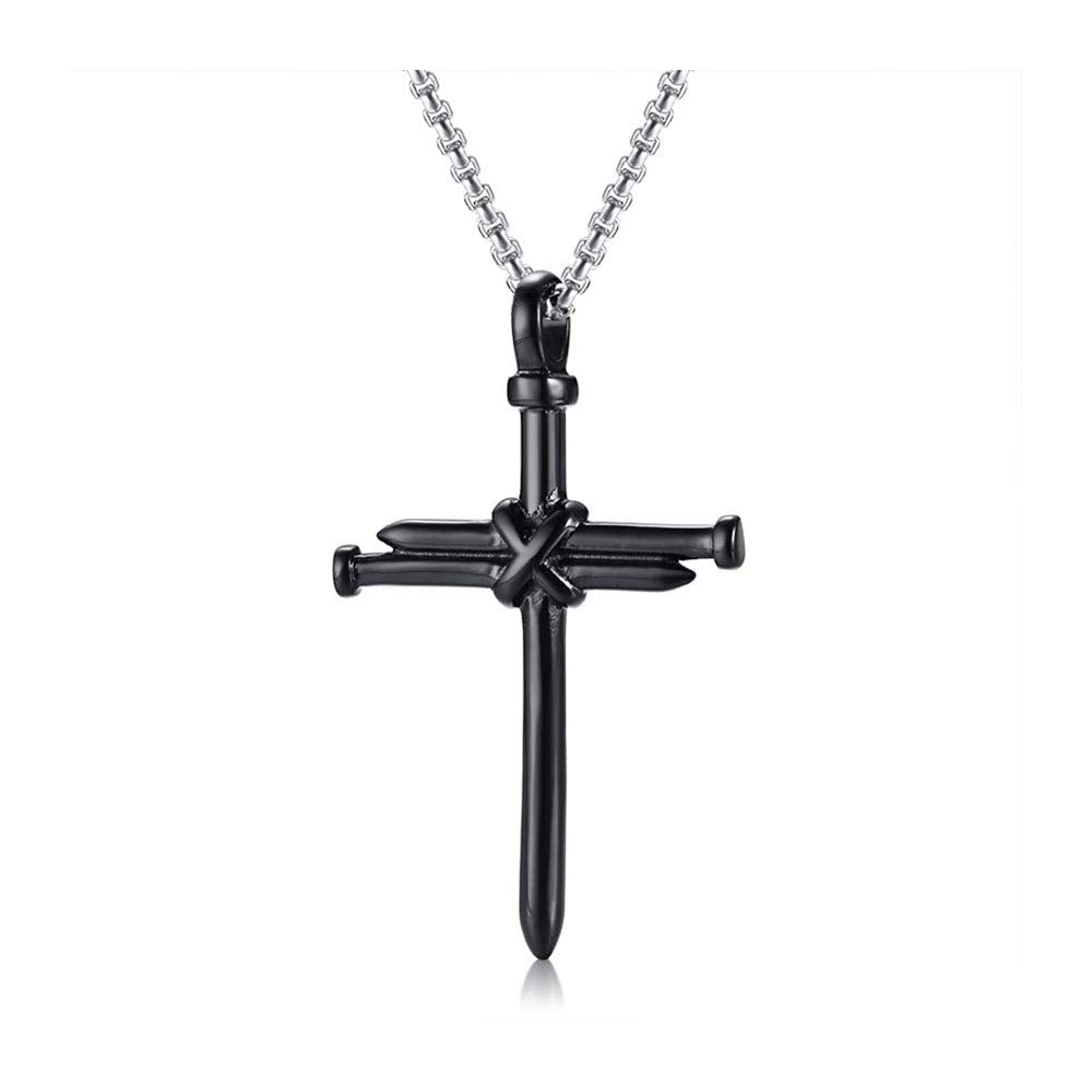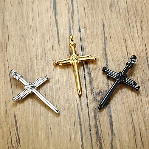 Rockyu ネックレス メンズ クロス 釘デザイン ステンレス製 金属アレルギー対応