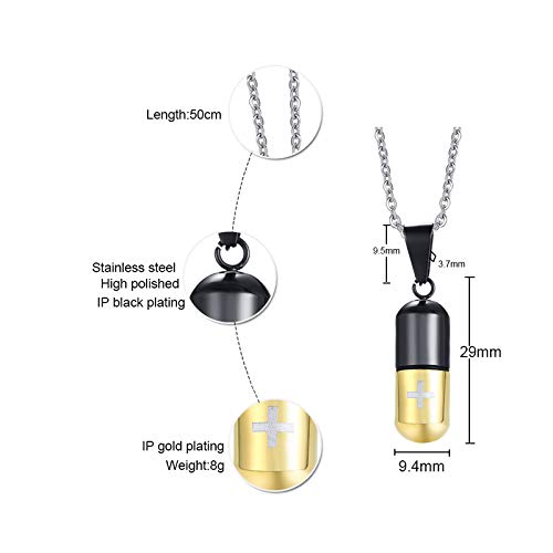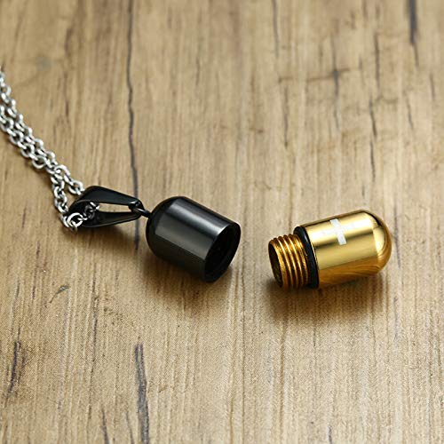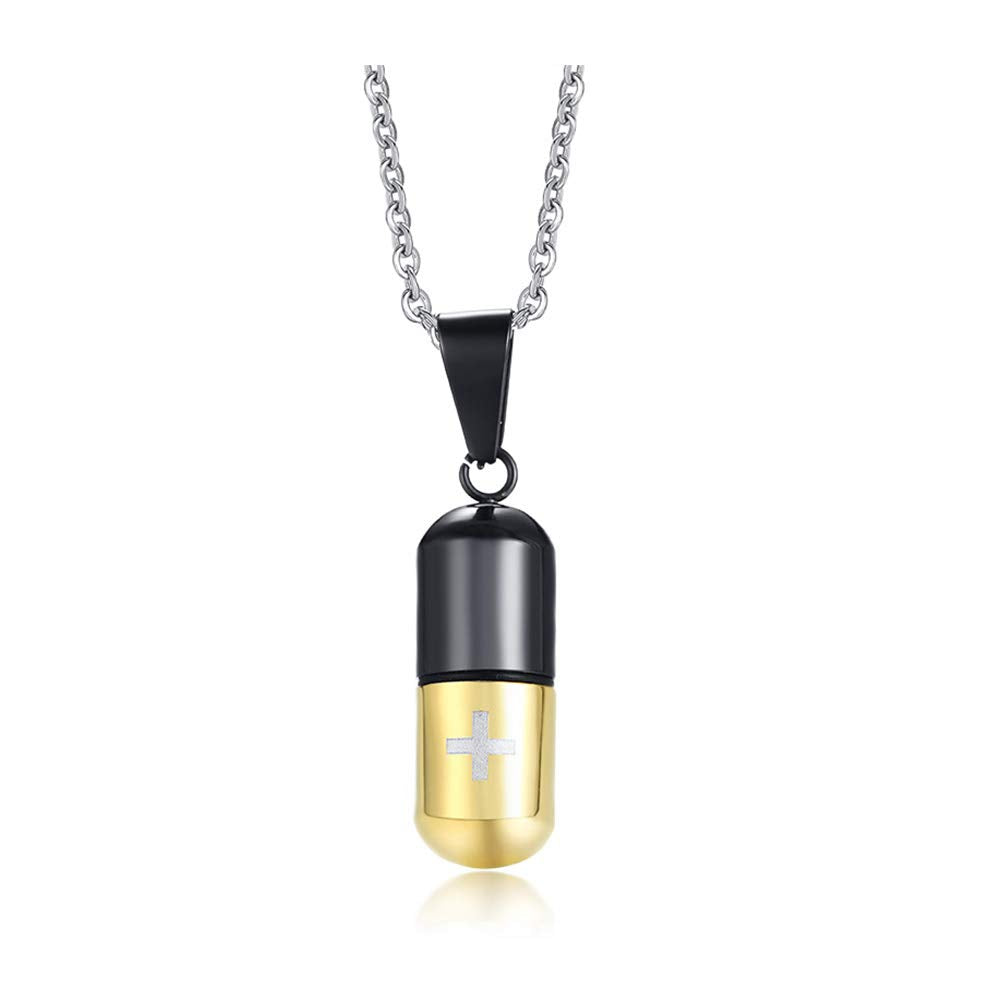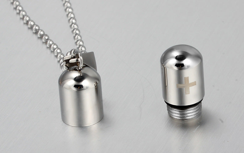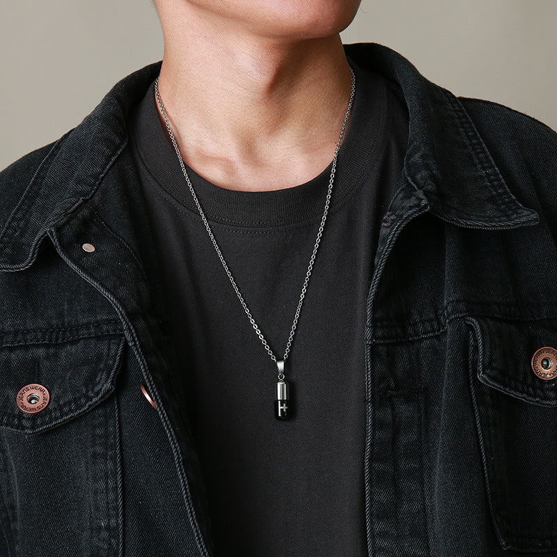 Rockyu カプセル型ネックレス 十字架刻印 ステンレス製 男女兼用 チタンカラーアクセサリー