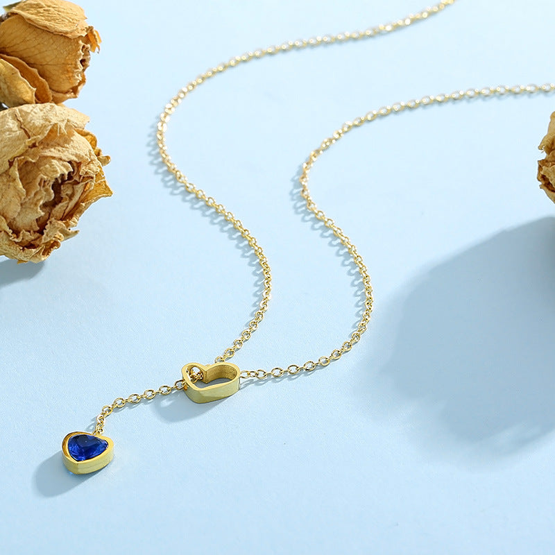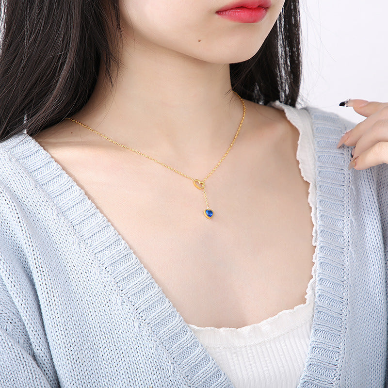 「Rockyu ハートネックレス」は、深みのあるブルーのストーンをあしらったハートモチーフが胸元で輝く、可憐でモダンなデザイン。シルバーとゴールドの2カラー展開で、シンプルながら存在感のあるアクセサリーです。