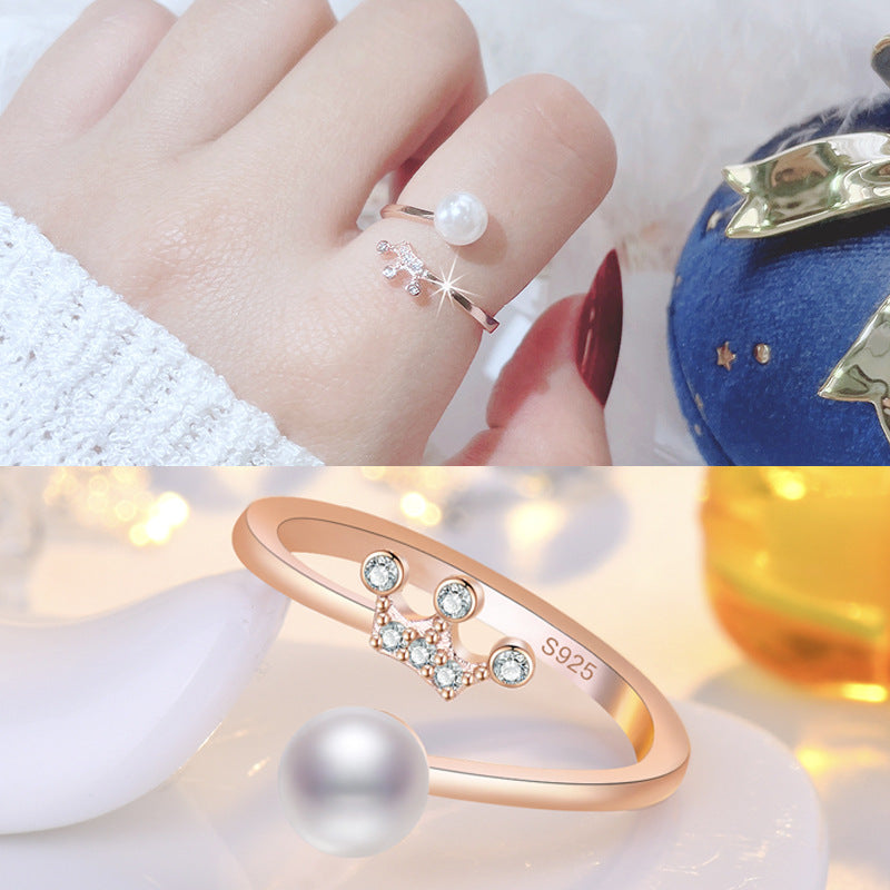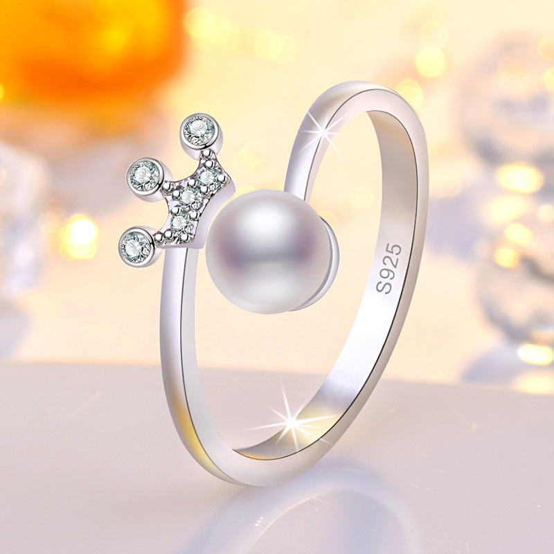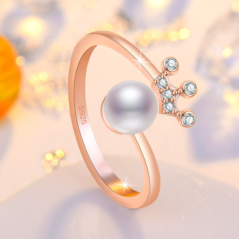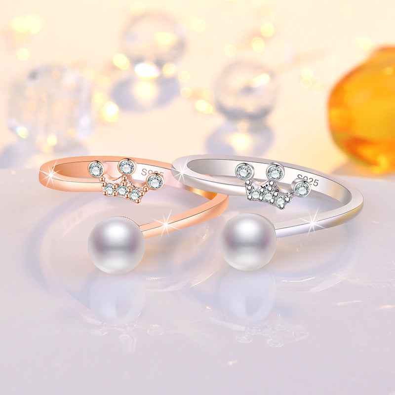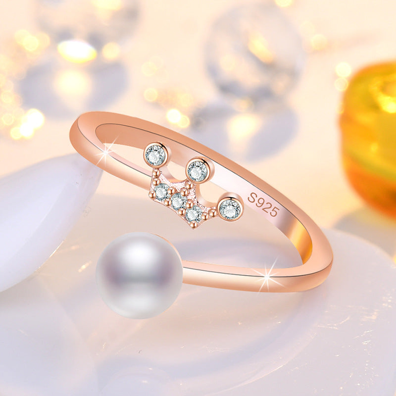 Rockyu レディース フリーサイズ指輪 王冠パールリング 上品デザイン