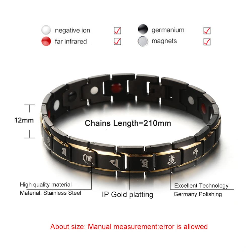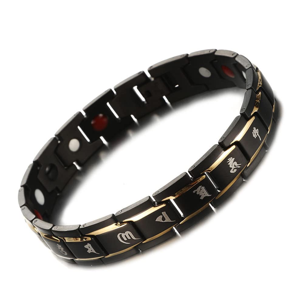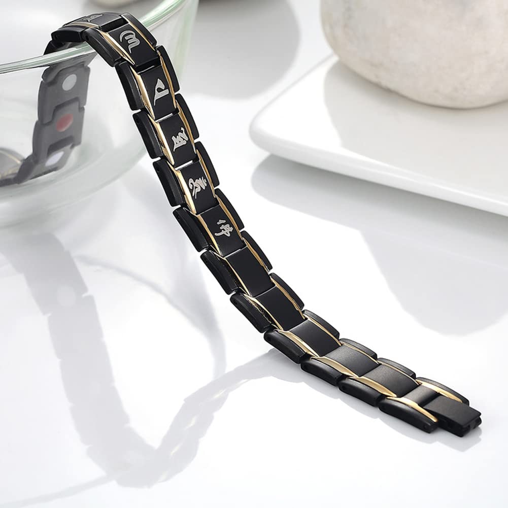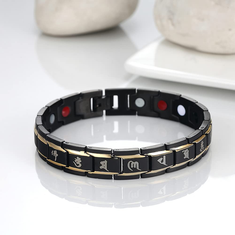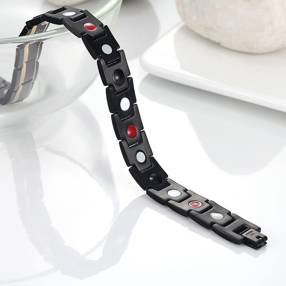 Rockyu ブレスレット メンズ ブラック 磁気 ゲルマニウム 静電気除去 ステンレス腕輪