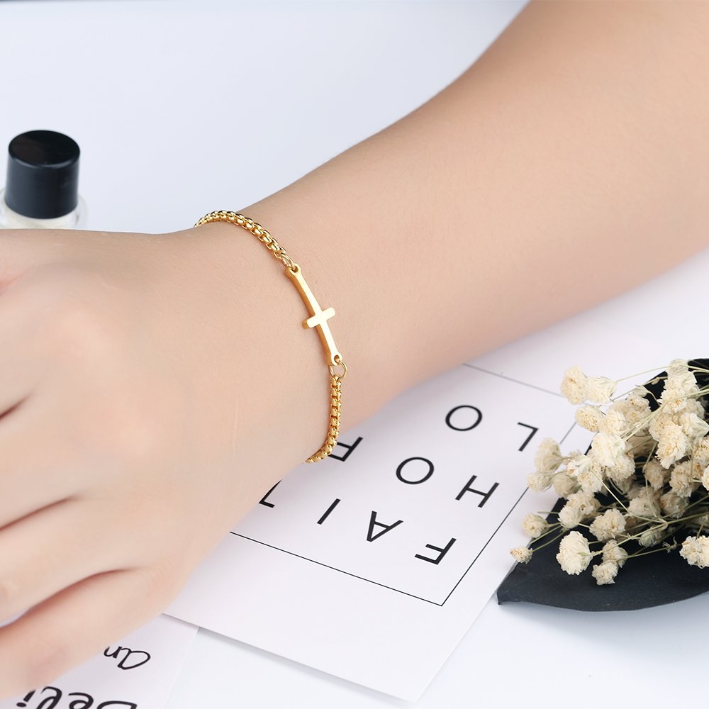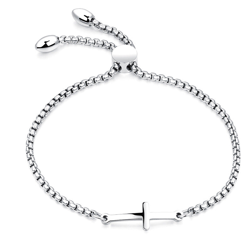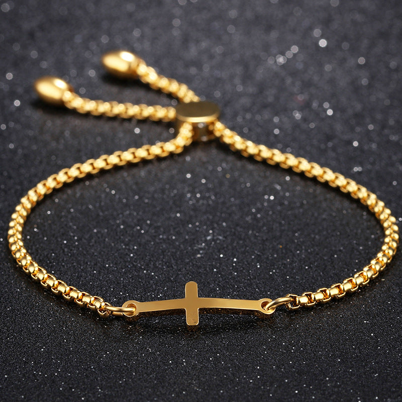 繊細なチェーンに、シンプルなクロスモチーフが映えるレディースブレスレット。スライダー式でサイズ調整も簡単だから、どんな手首にもぴったりフィット。ひとつでも重ね付けでも映える、万能アクセです。