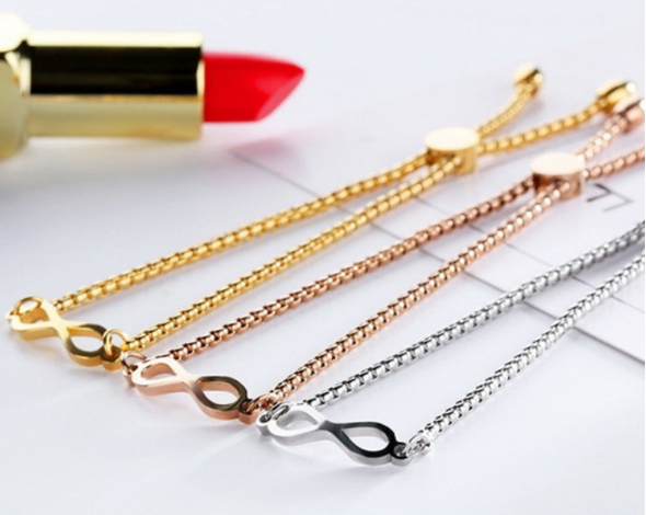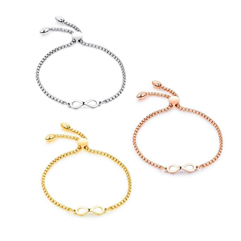 Rockyu インフィニティスライダーブレスレット|無限モチーフ×調節式チェーン|3カラー展開