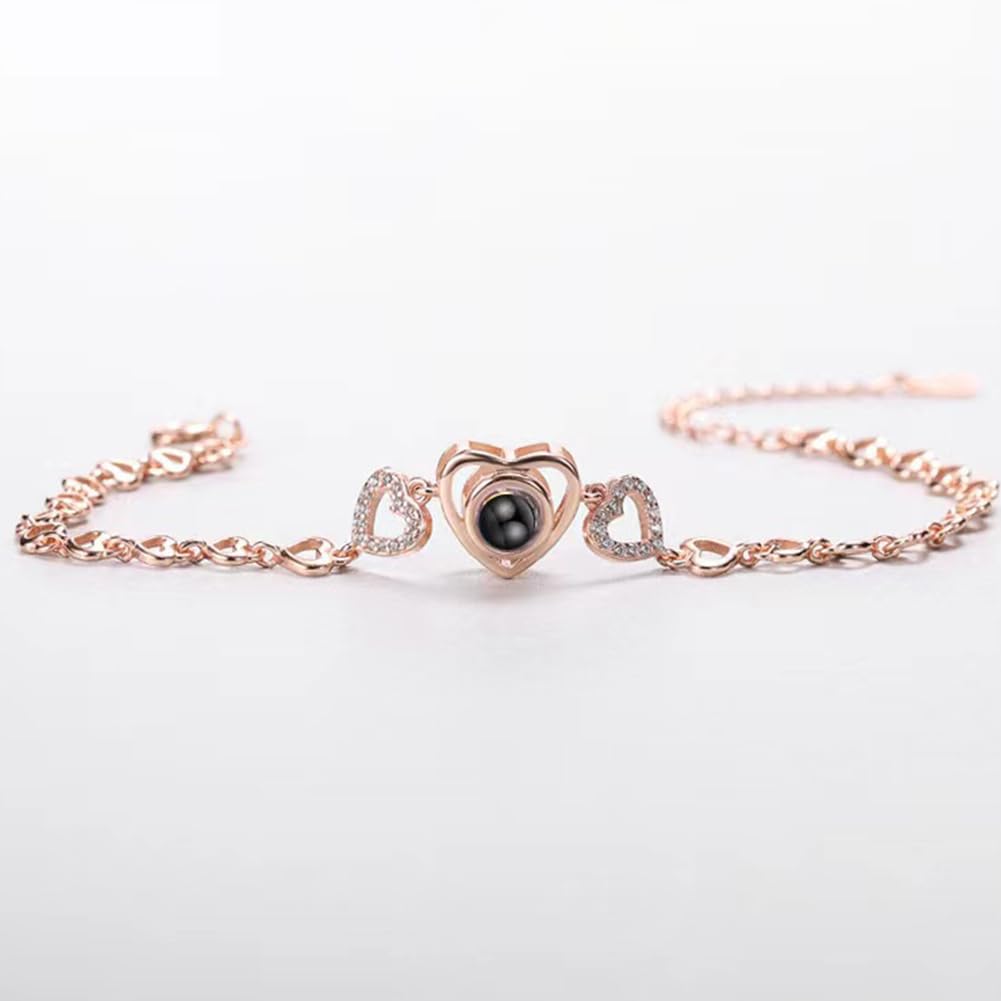 【秘密のハート】S925シルバー&ローズゴールドブレスレット|I Love You投影×ジルコン輝き