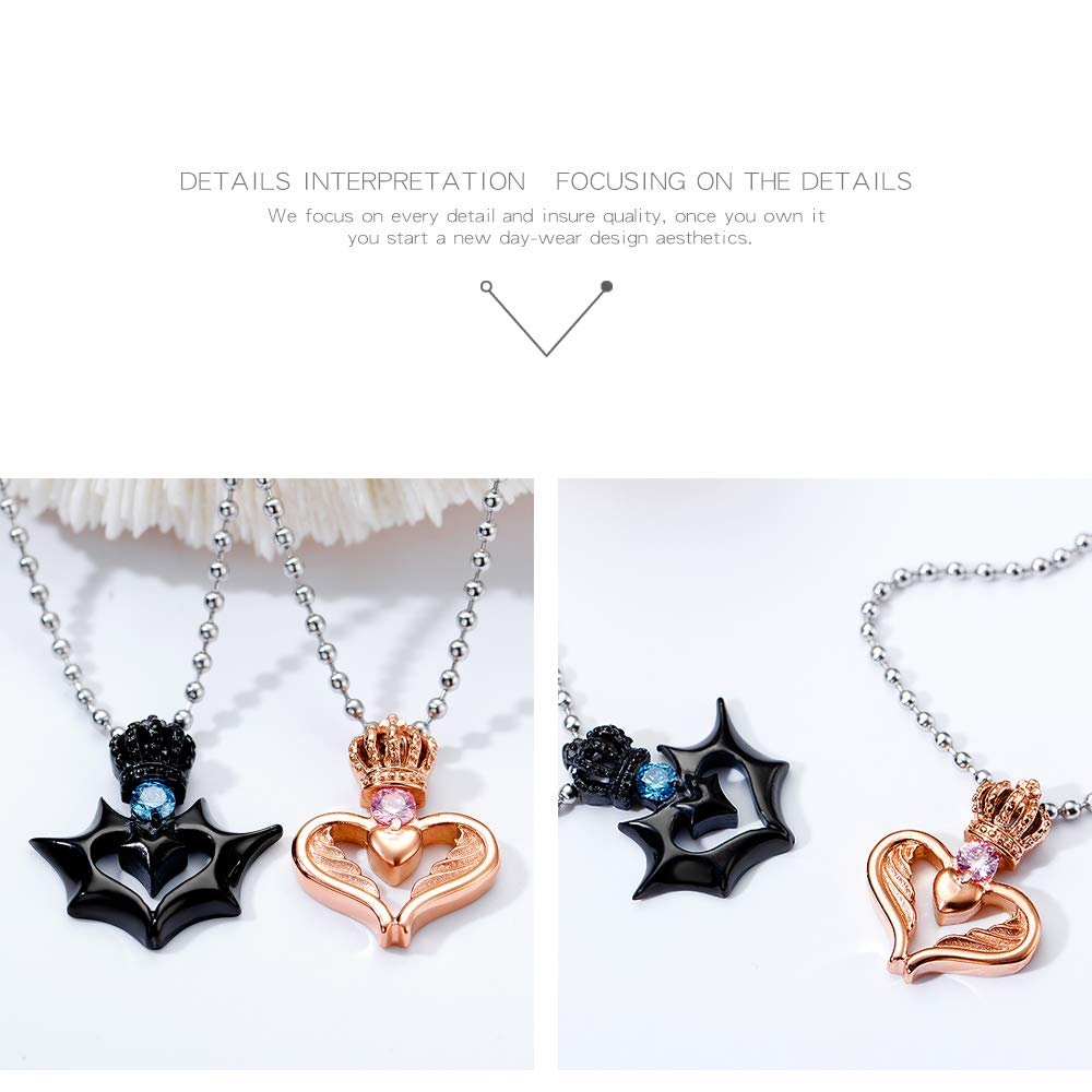 Rockyu 王冠ハートペアネックレス|クラウン×サファイア風デザインのカップルジュエリーGX1385-Pair-OPK