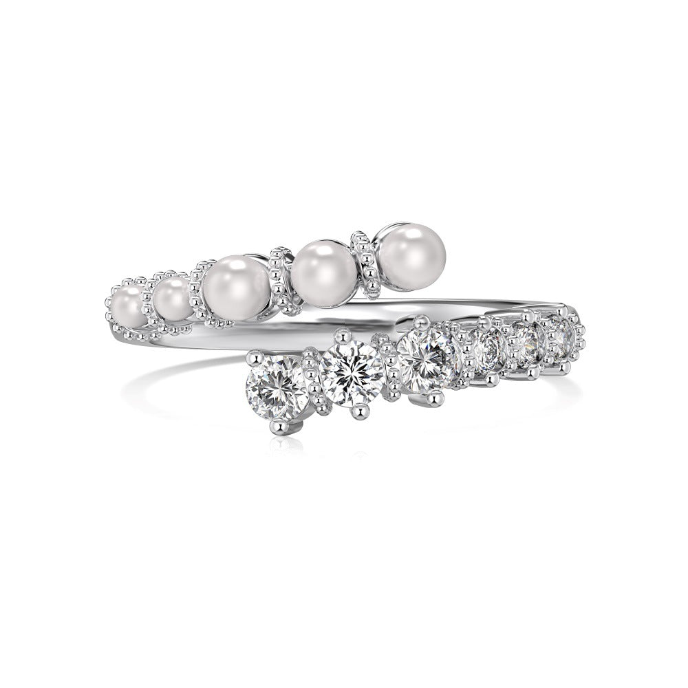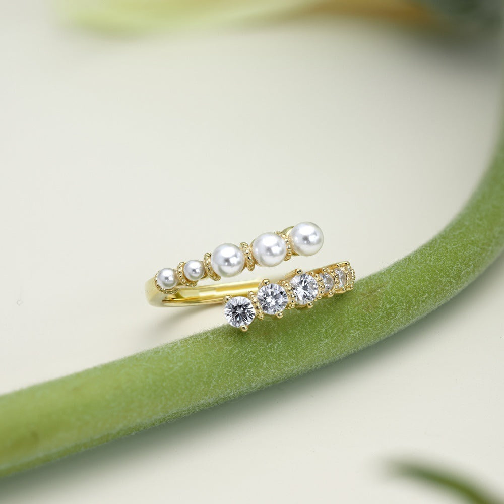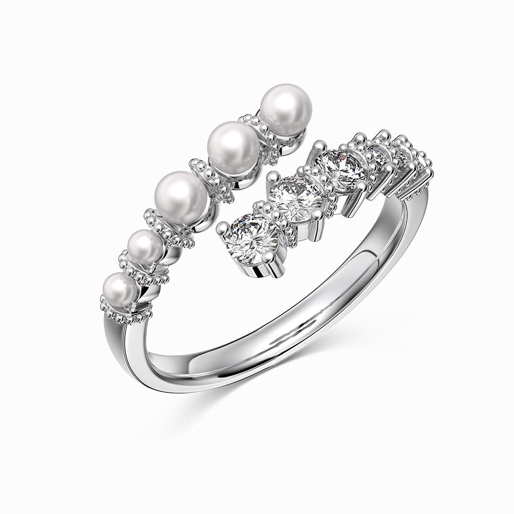 Rockyu レディースリング フリーサイズ パールとストーンが輝く華やか指輪