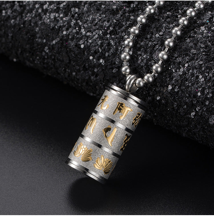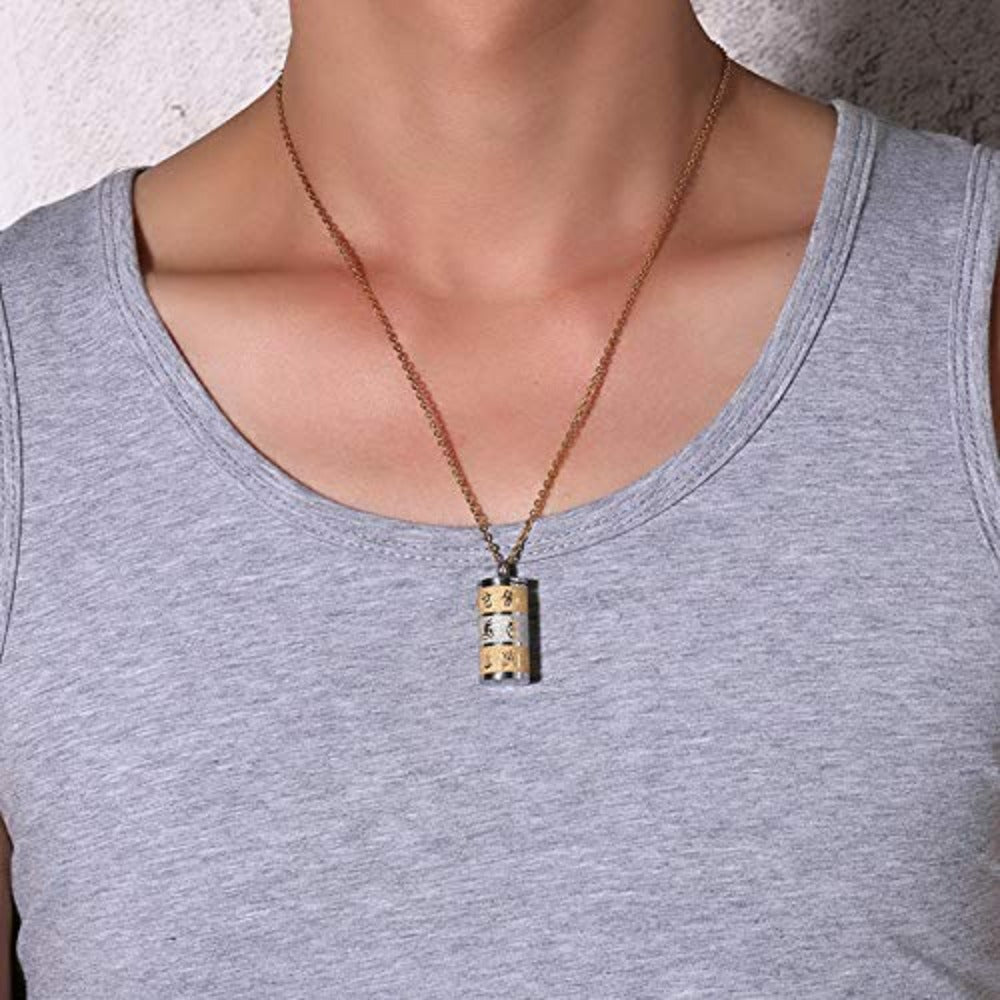 Rockyu ネックレス シリンダー ペンダント ステンレス ゴールド×シルバー 蓮モチーフ メンズ レディース