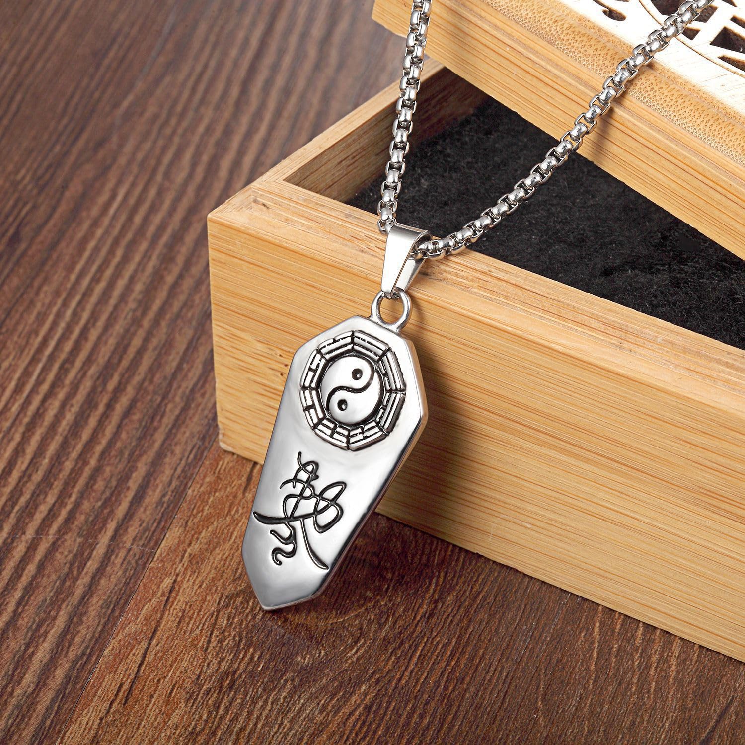 Rockyu が提案する八卦モチーフのチタン製ネックレス。古代の叡智を象徴する八卦デザインをモダンに落とし込み、胸元で力強い存在感を放ちます。メダル型のペンダントは繊細な刻印が施され、神秘的でスピリチュアルな雰囲気を演出。ニューヨークスタイルを意識した洗練デザインで、日常のカジュアルコーデにもパーティーシーンにも映える万能アイテムです。