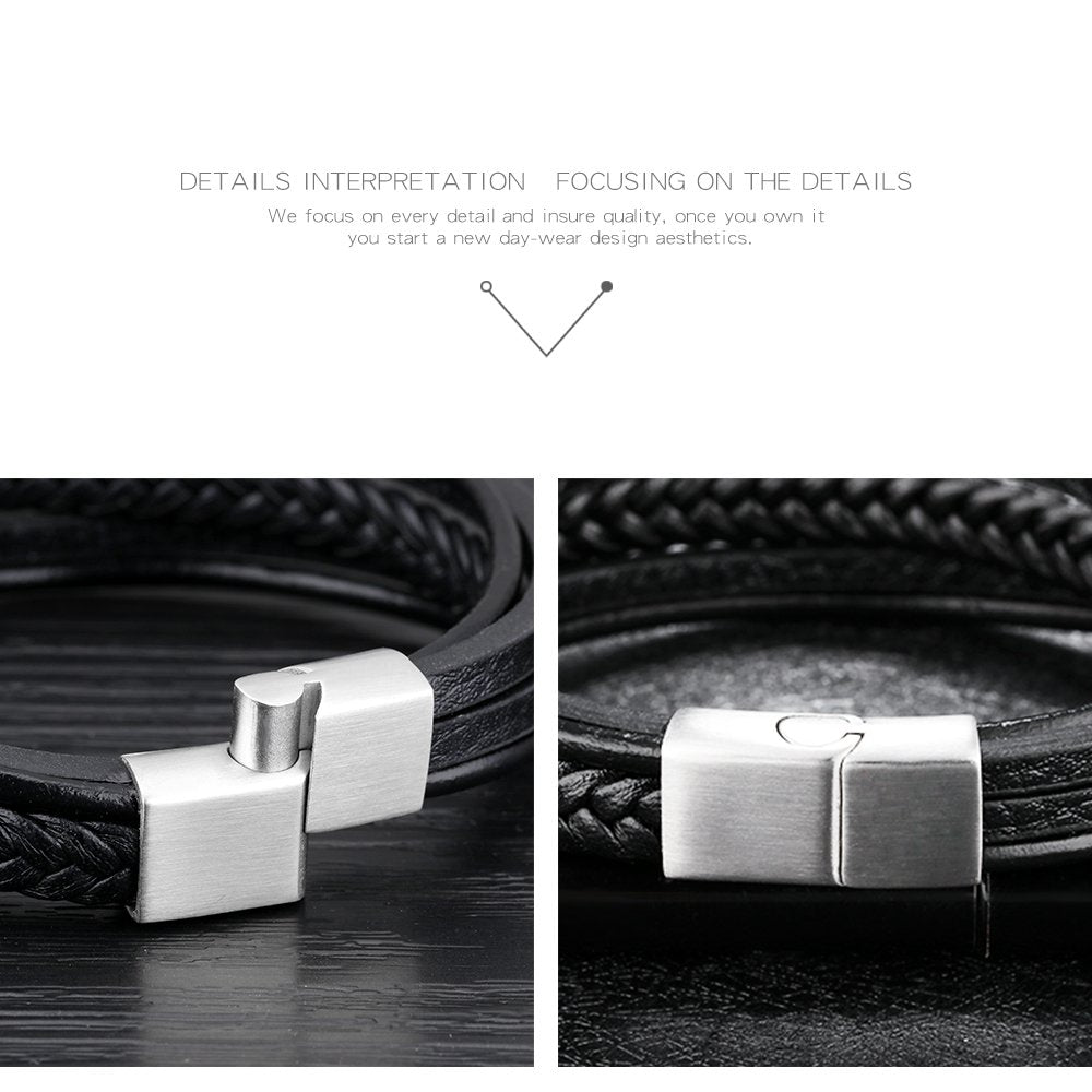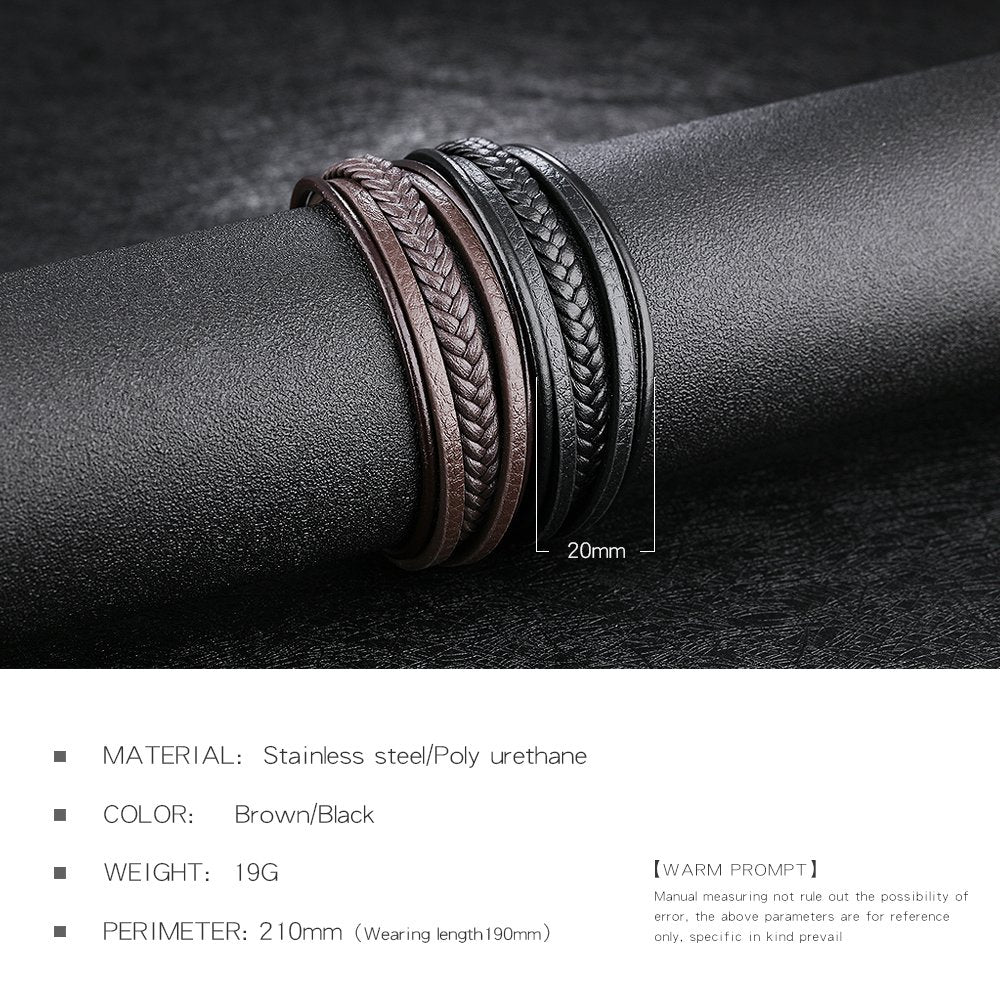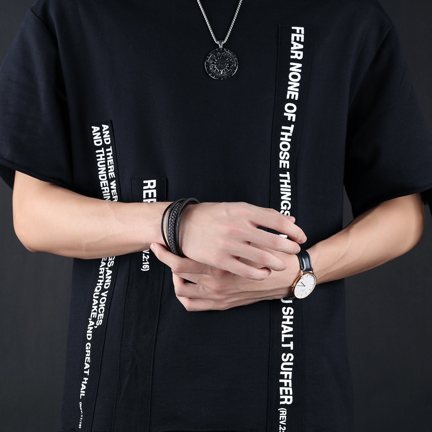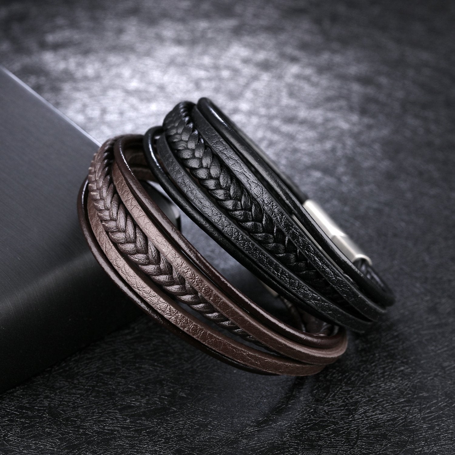 Rockyu 多連レザーブレスレット|編み込み×PU革 メンズカジュアルバングル