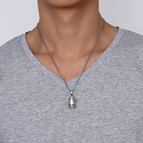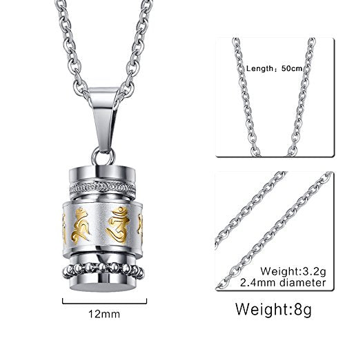 Rockyu メモリアルネックレス メンズ ステンレス製 遺骨カプセル ゴールド彫刻入りPN-692-JSF