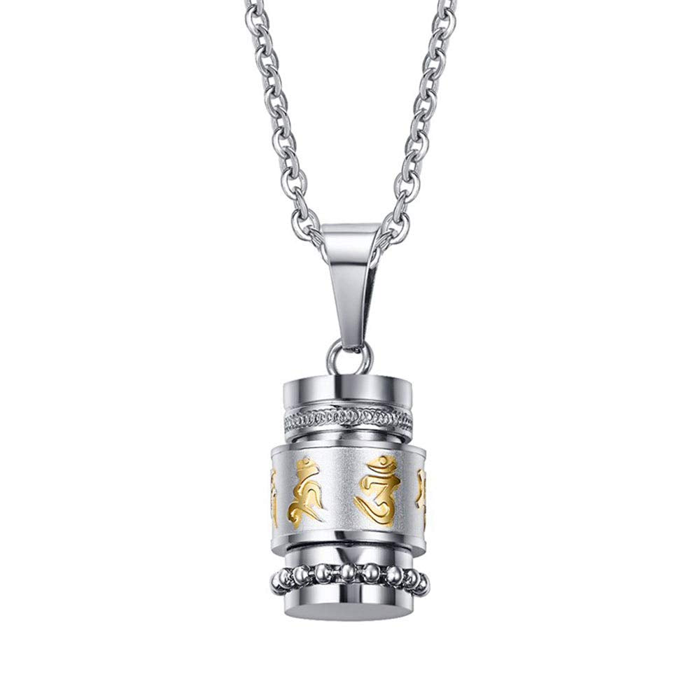 Rockyu メモリアルネックレス メンズ ステンレス製 遺骨カプセル ゴールド彫刻入り