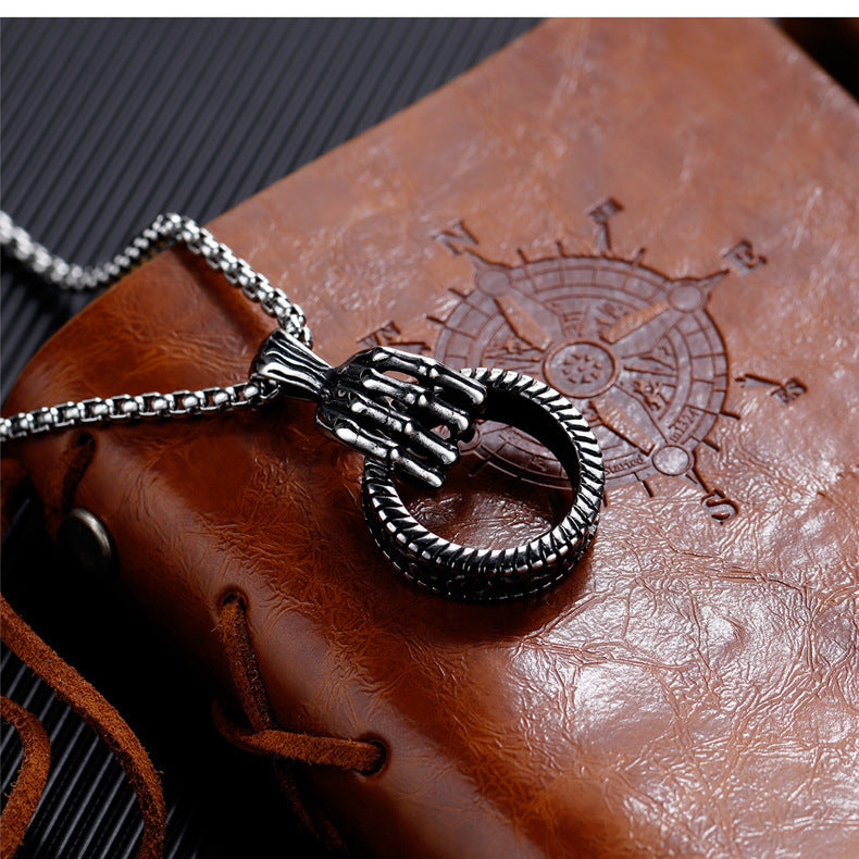 Rockyu から登場したこのスカルハンドデザインのネックレスは、ただのアクセサリーではありません。骨の手がしっかりとリングを掴むデザインは、見る者を惹きつける圧倒的な存在感を放ちます。ステンレススチール製だから錆びにくく、日常使いでも長く輝きを保つタフな仕上がり。チェーンは55cm、重さは15gと程よいボリューム感で、カジュアルコーデにもストリートファッションにも相性抜群です。ダークでありながらスタイリッシュな印象を与えるシルバートーンは、Rockyu ブランドの魅力を存分に楽しめる逸品。個性的なデザインを求める男性や、特別なギフトを探している方におすすめです。
