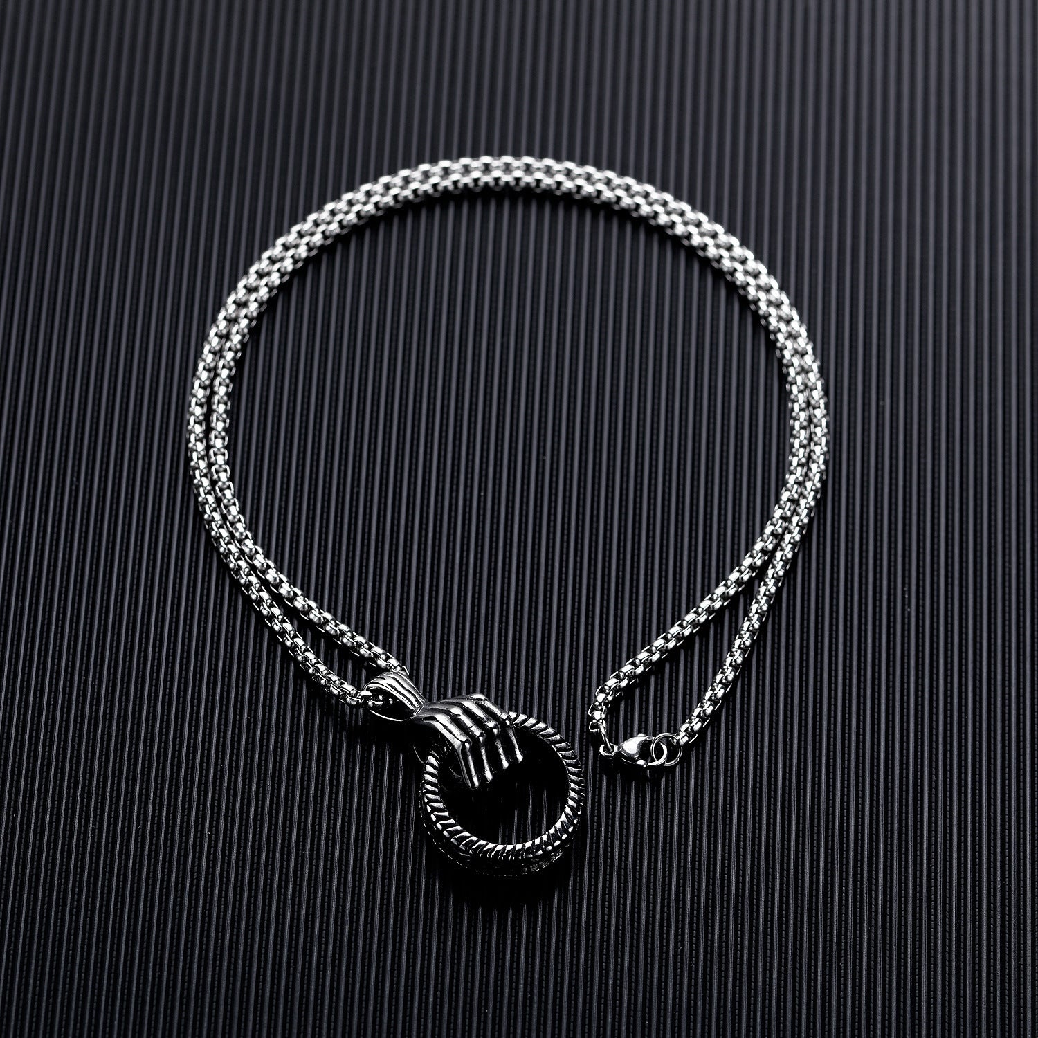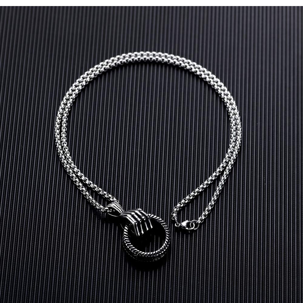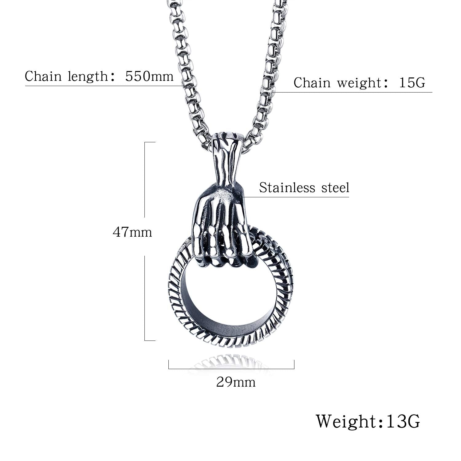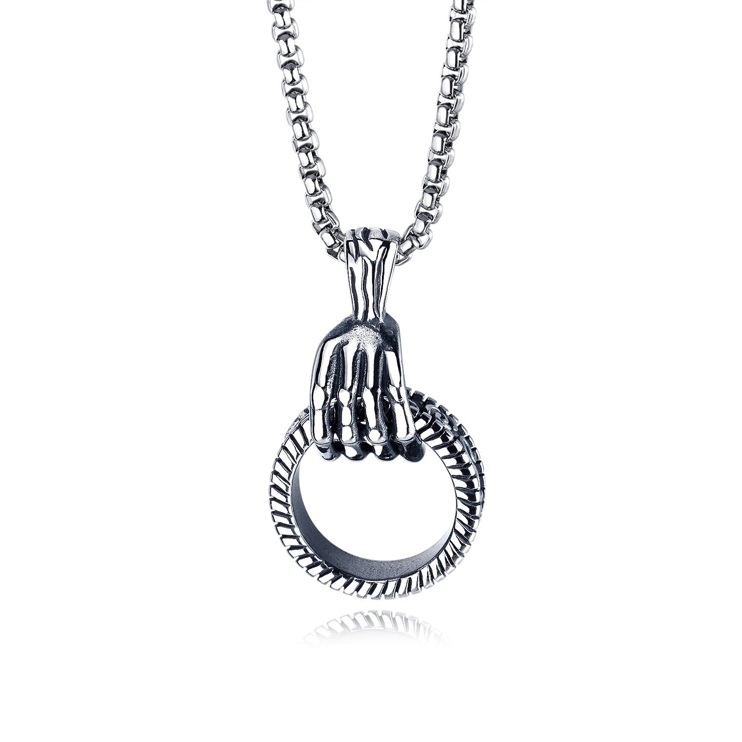 Rockyu ネックレス メンズ ステンレス スカルハンド リングペンダント シルバー ジュエリー
