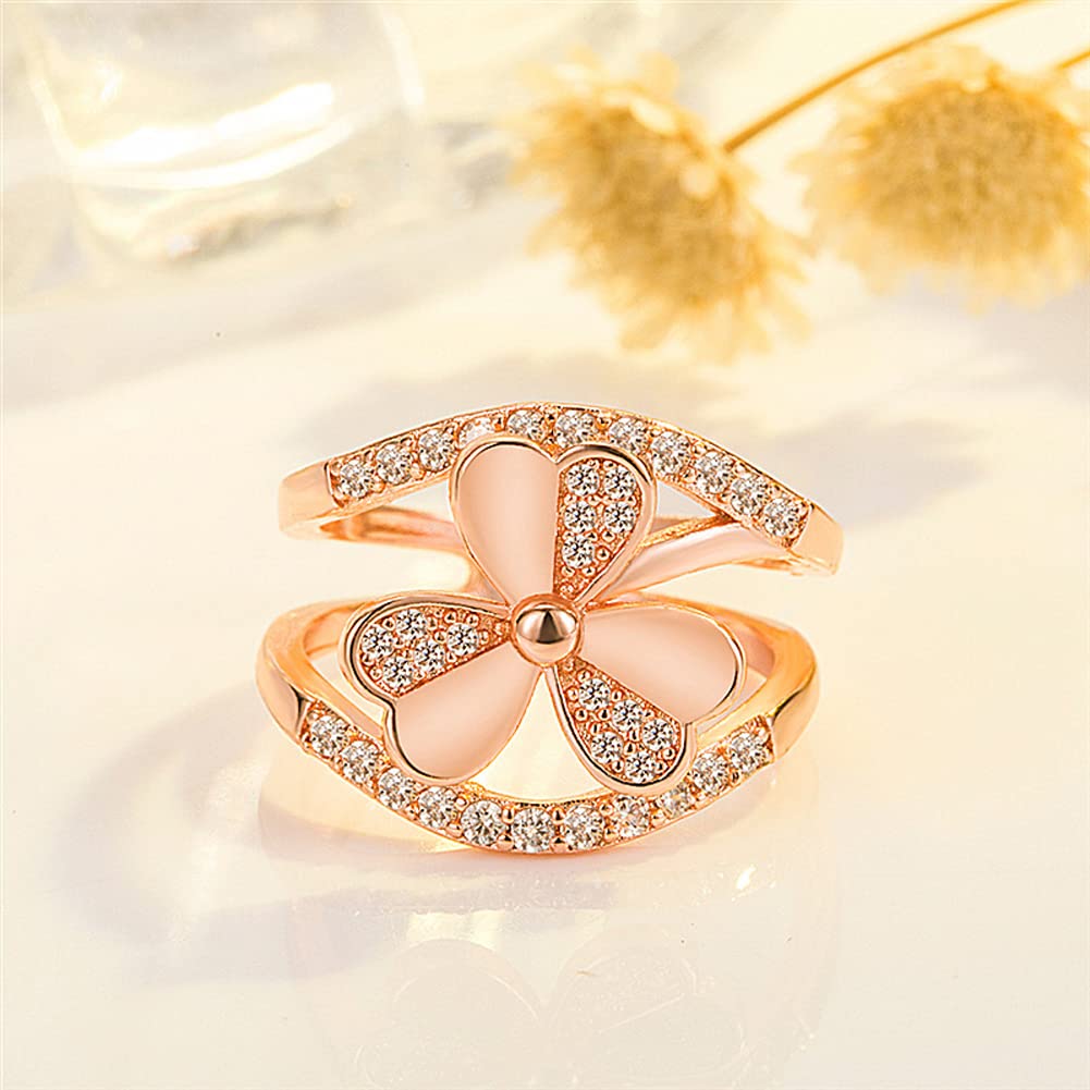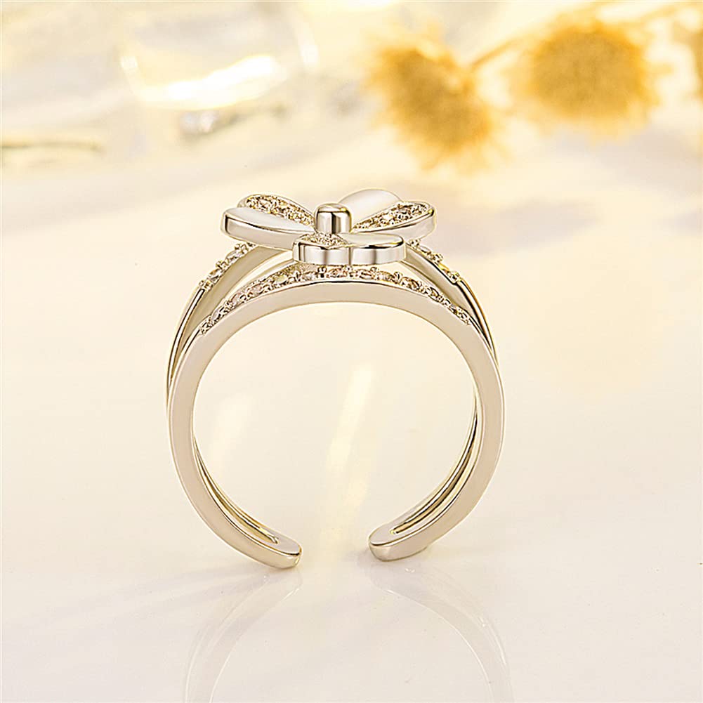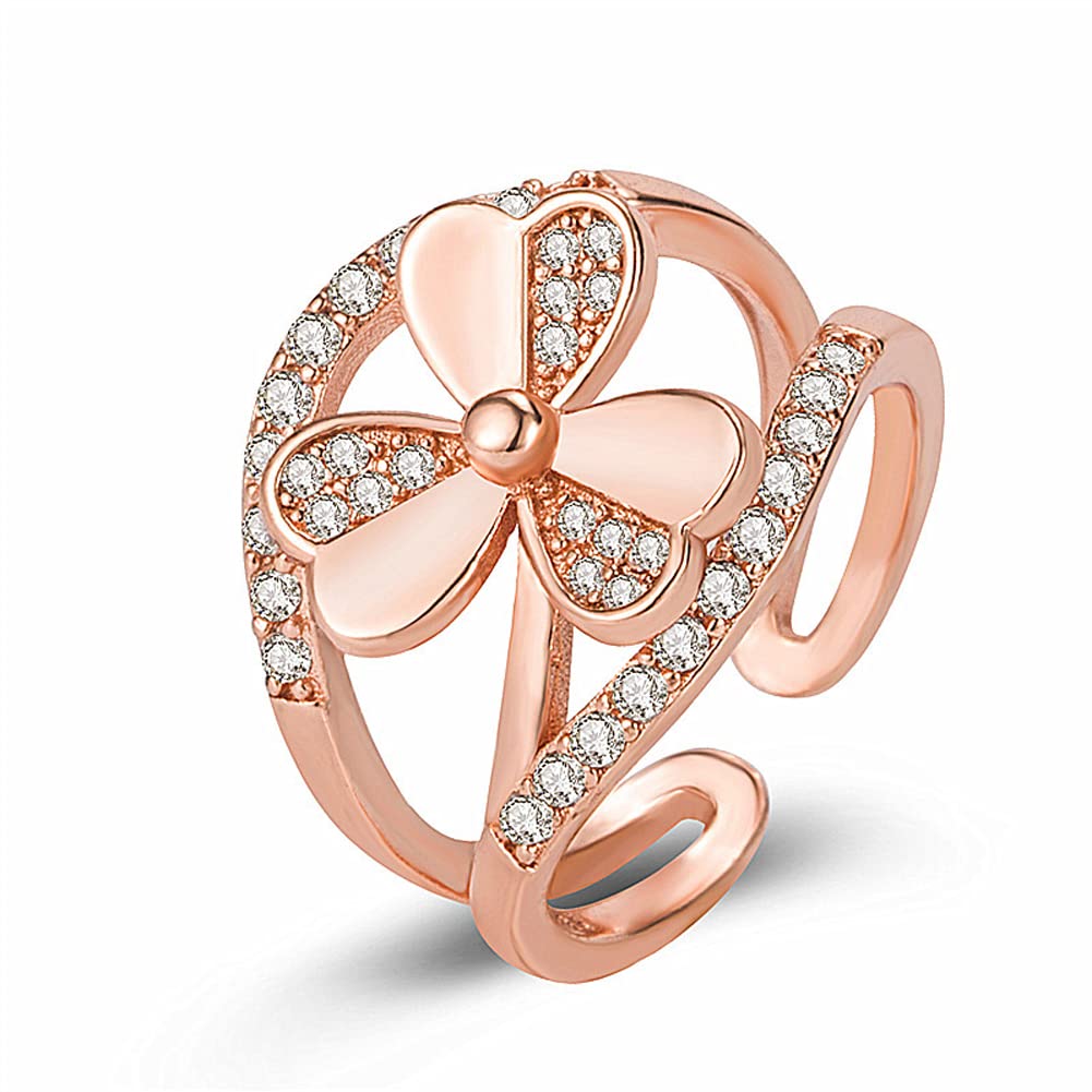 Rockyu 三つ葉モチーフリング|19K仕上げ×ジルコニア フリーサイズ レディース指輪