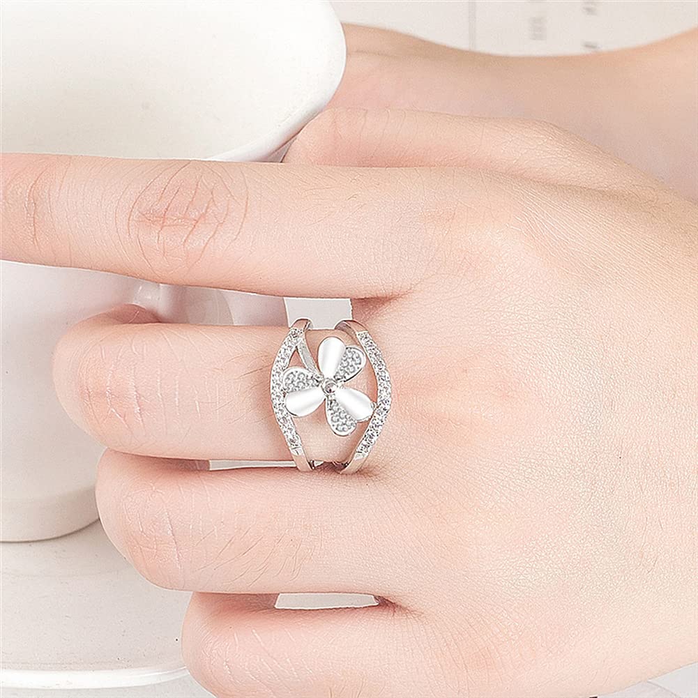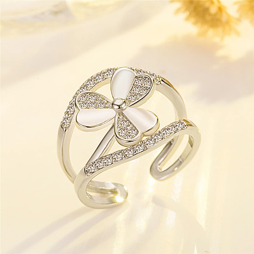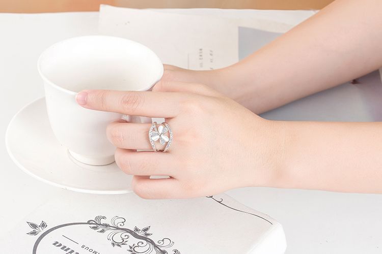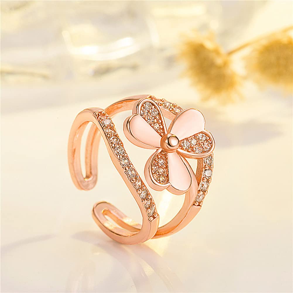 Rockyu 三つ葉モチーフリング|19K仕上げ×ジルコニア フリーサイズ レディース指輪