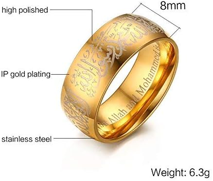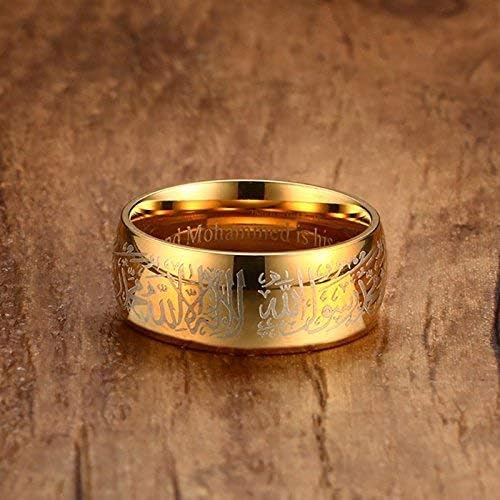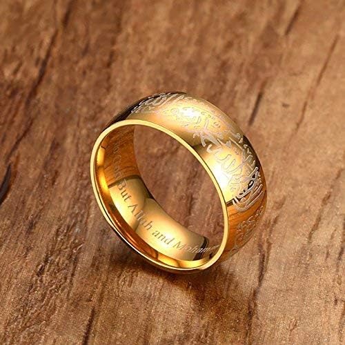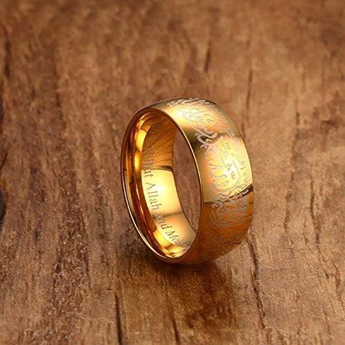 Rockyu メンズ ゴールドリング|六字真言刻印 ステンレス製 8mm 幅広デザイン