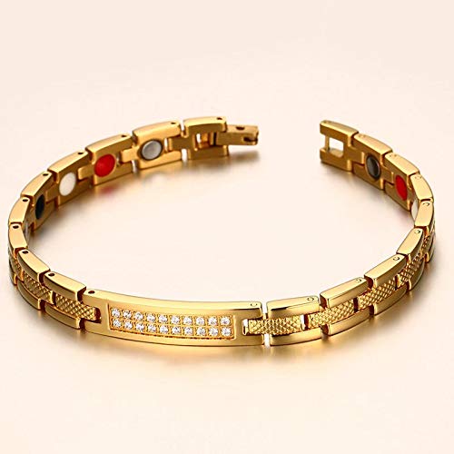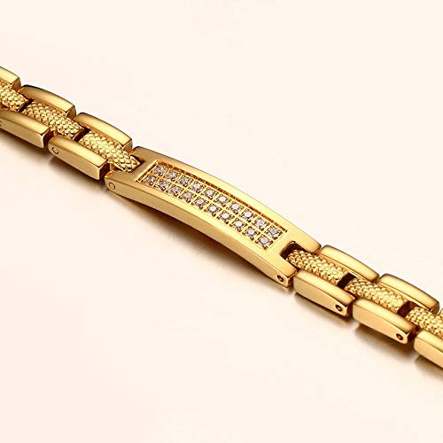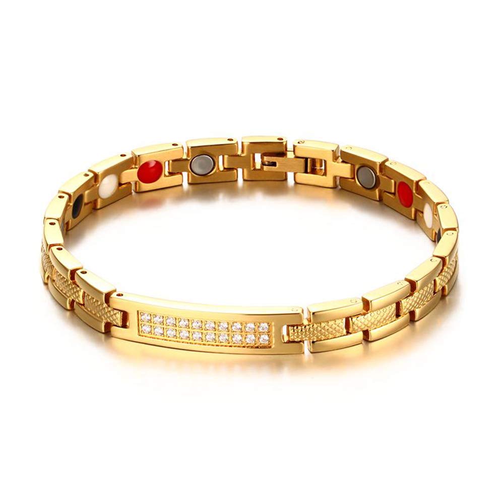 【煌めき×癒し】ジルコニア×磁気ブレスレット|ステンレス製・レディース・ゴールド