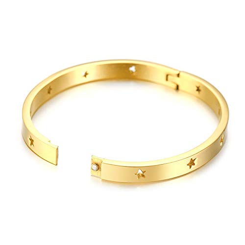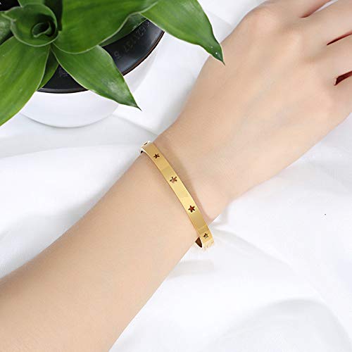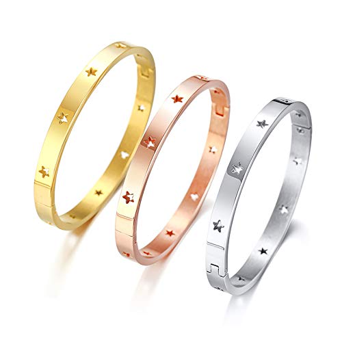 Rockyu スターモチーフ バングル ステンレス シルバー ゴールド ピンクゴールド レディース
