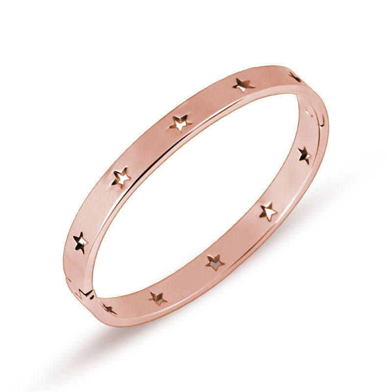 「Rockyu スターモチーフ バングル」は、キラリと輝く星型の透かしデザインが魅力のスタイリッシュなアクセサリー。ゴールド シルバー ピンクゴールドの3カラー展開で、シーンやコーディネートに合わせて選べるのが嬉しいポイントです。