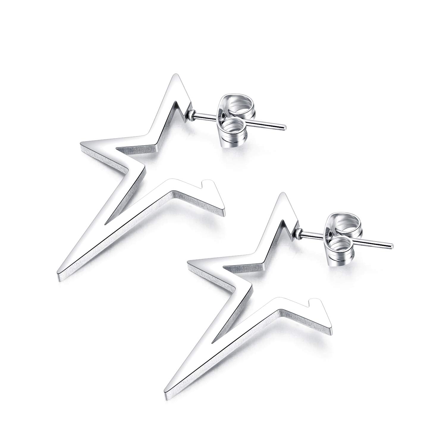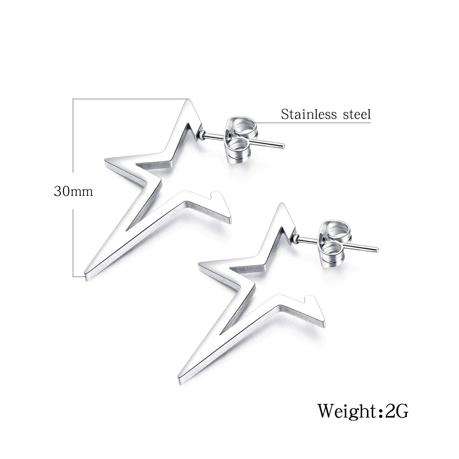 Rockyu 星モチーフピアス ステンレス製 30mm レディース 金属アレルギー対応 シンプル&おしゃれ