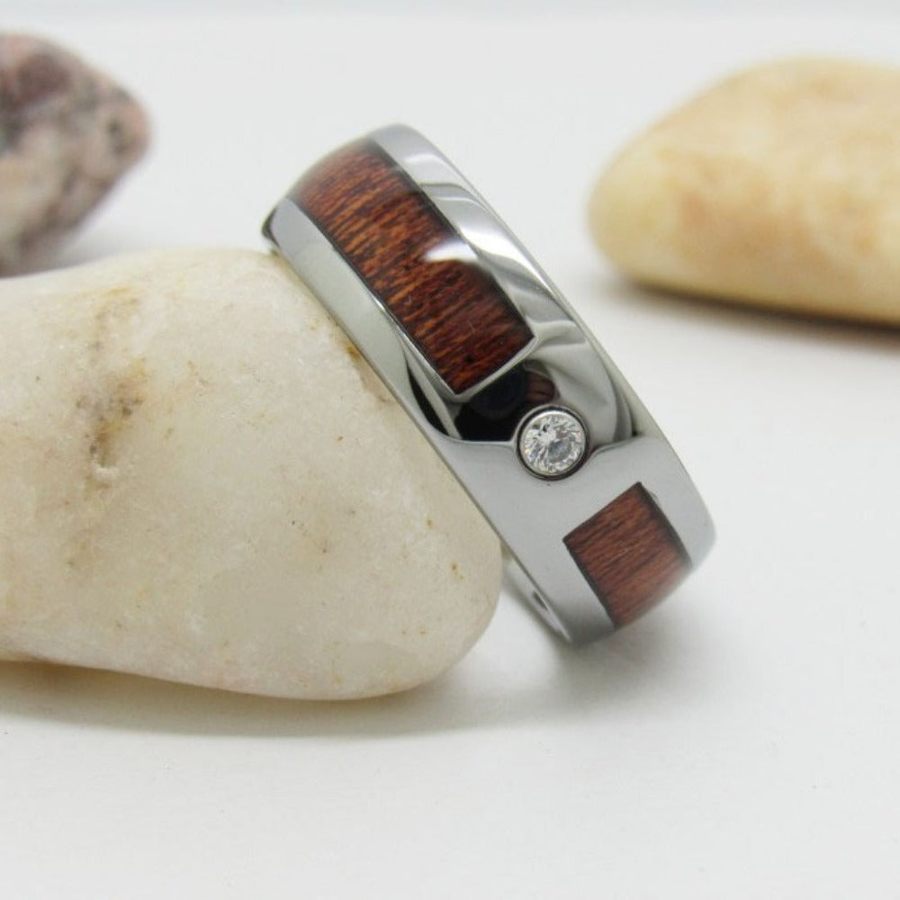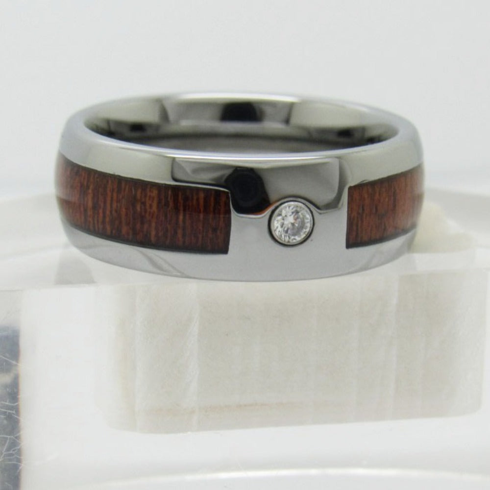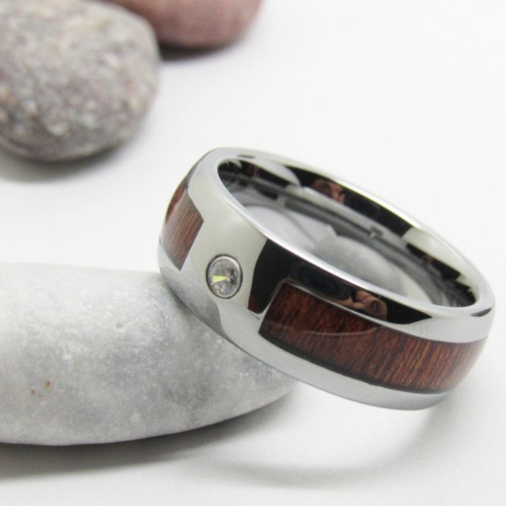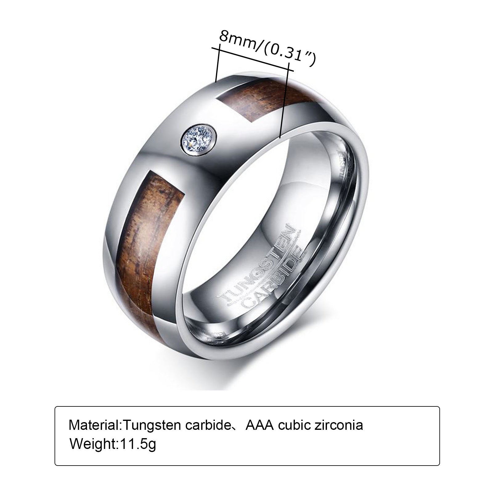Rockyu タングステンカーバイドリング メンズ 8mm 木目インレイ ジルコニア シルバー 重厚感デザイン