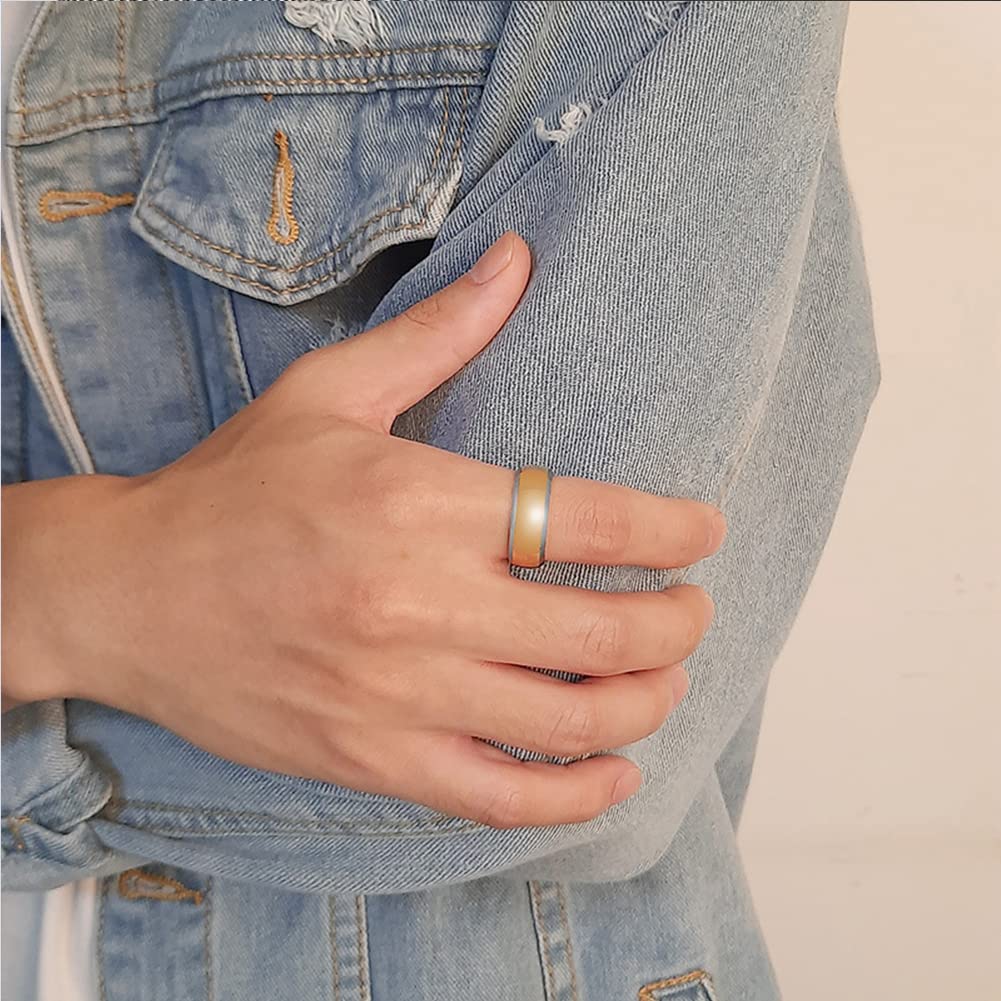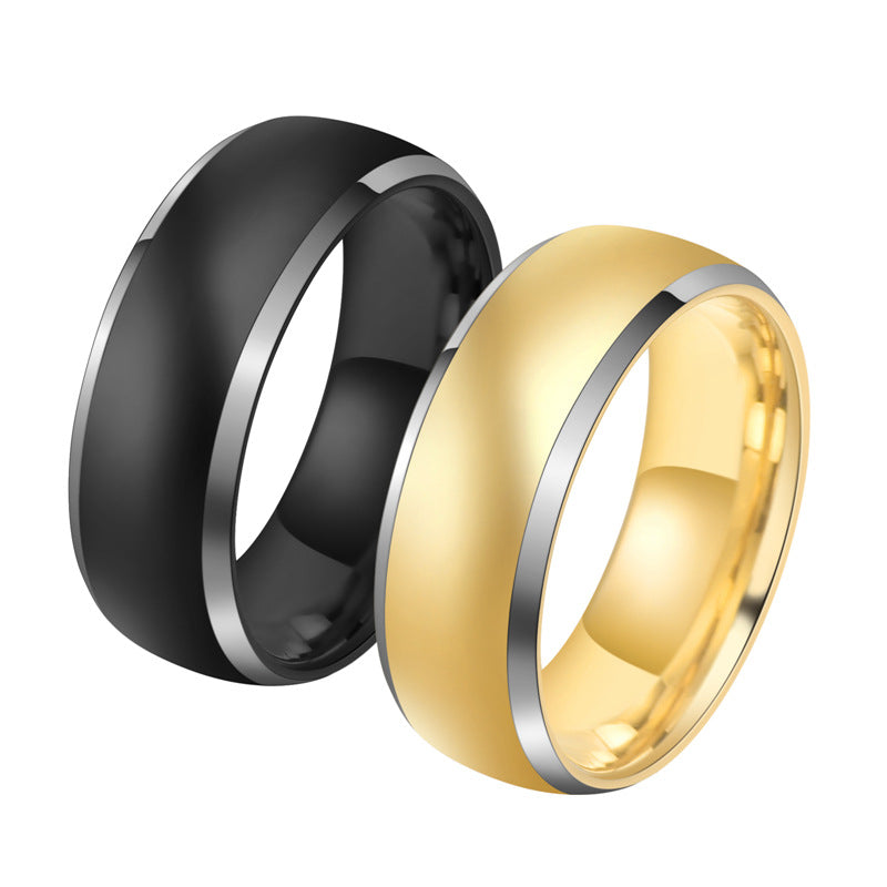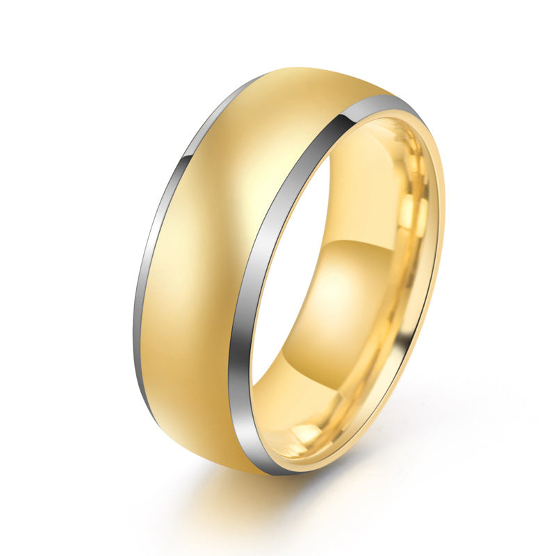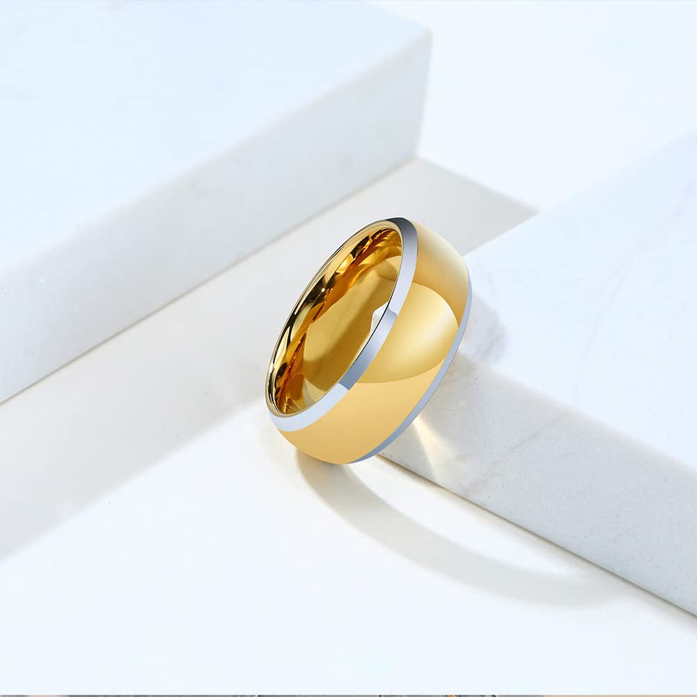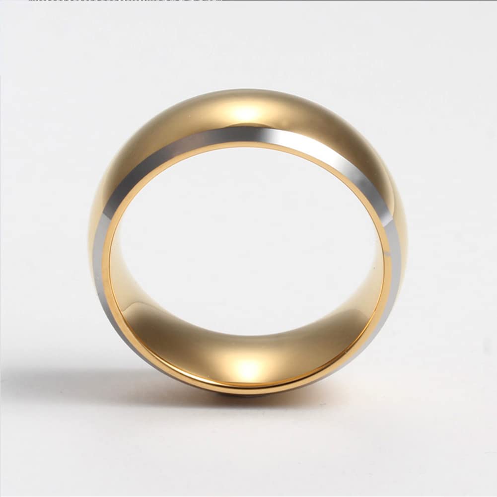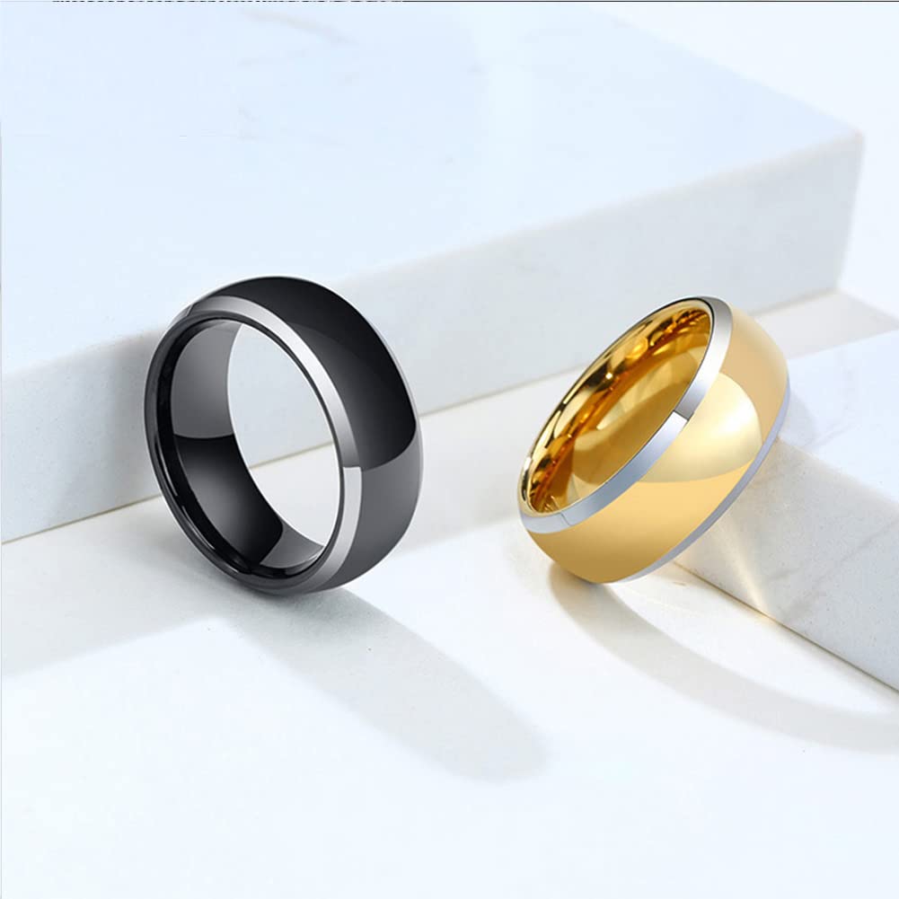 Rockyu タングステンリング メンズ 8mm ゴールド&ブラック 光沢仕上げ