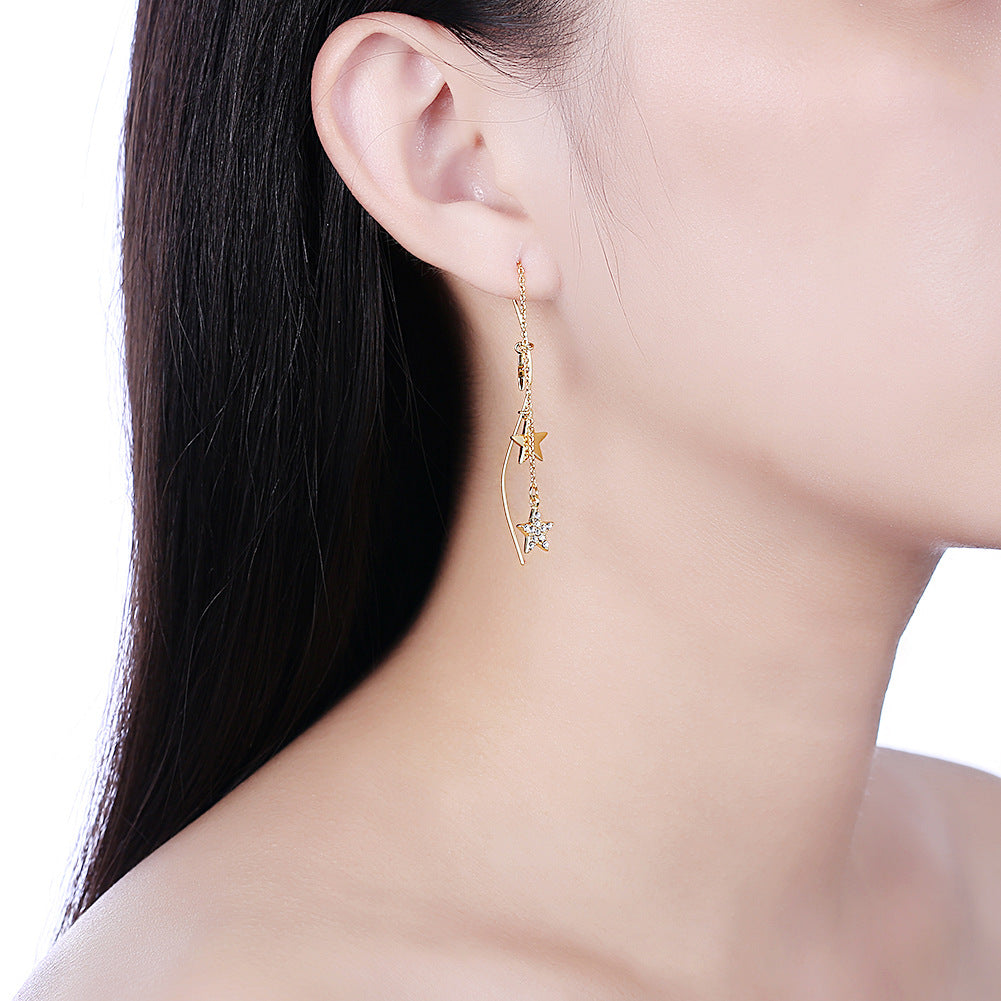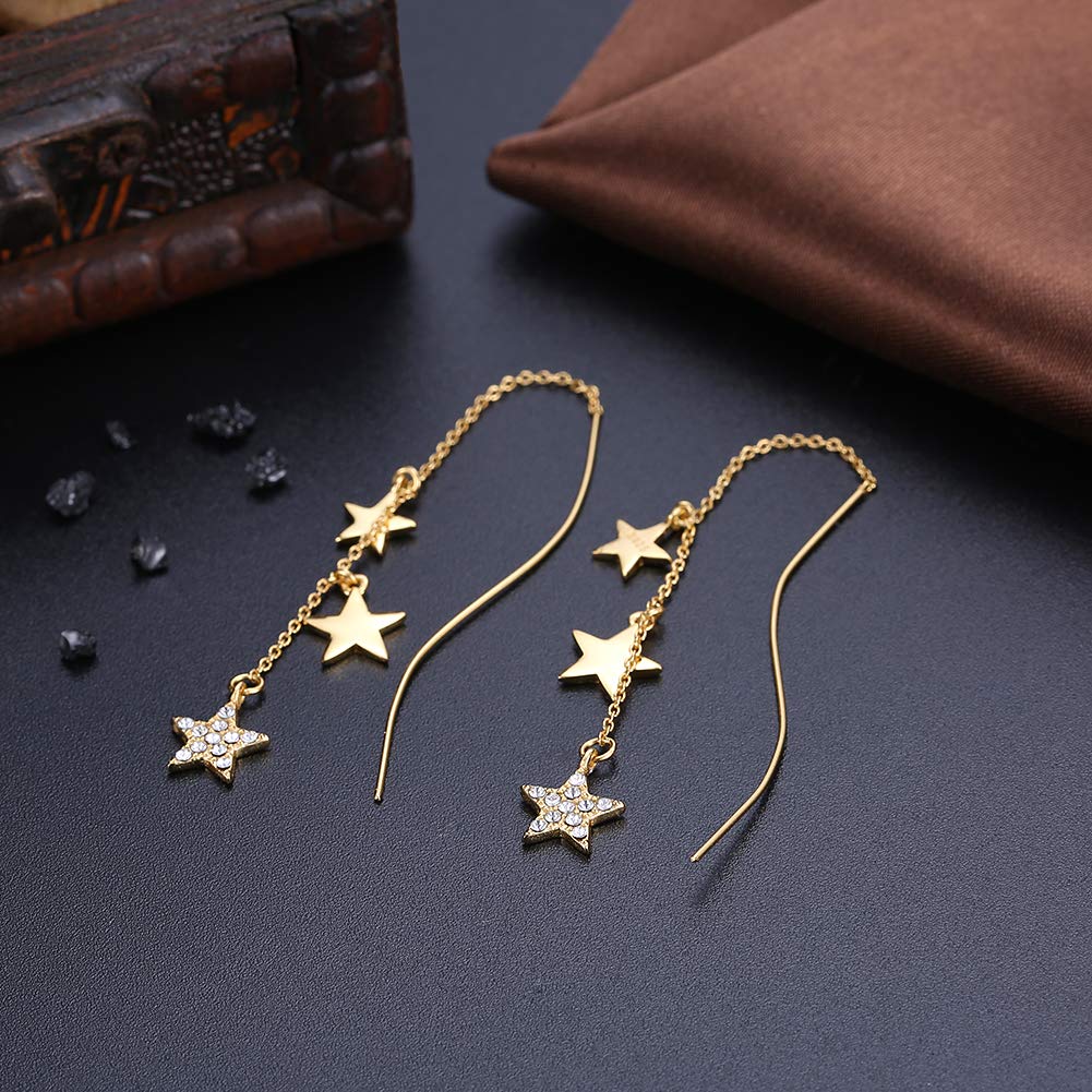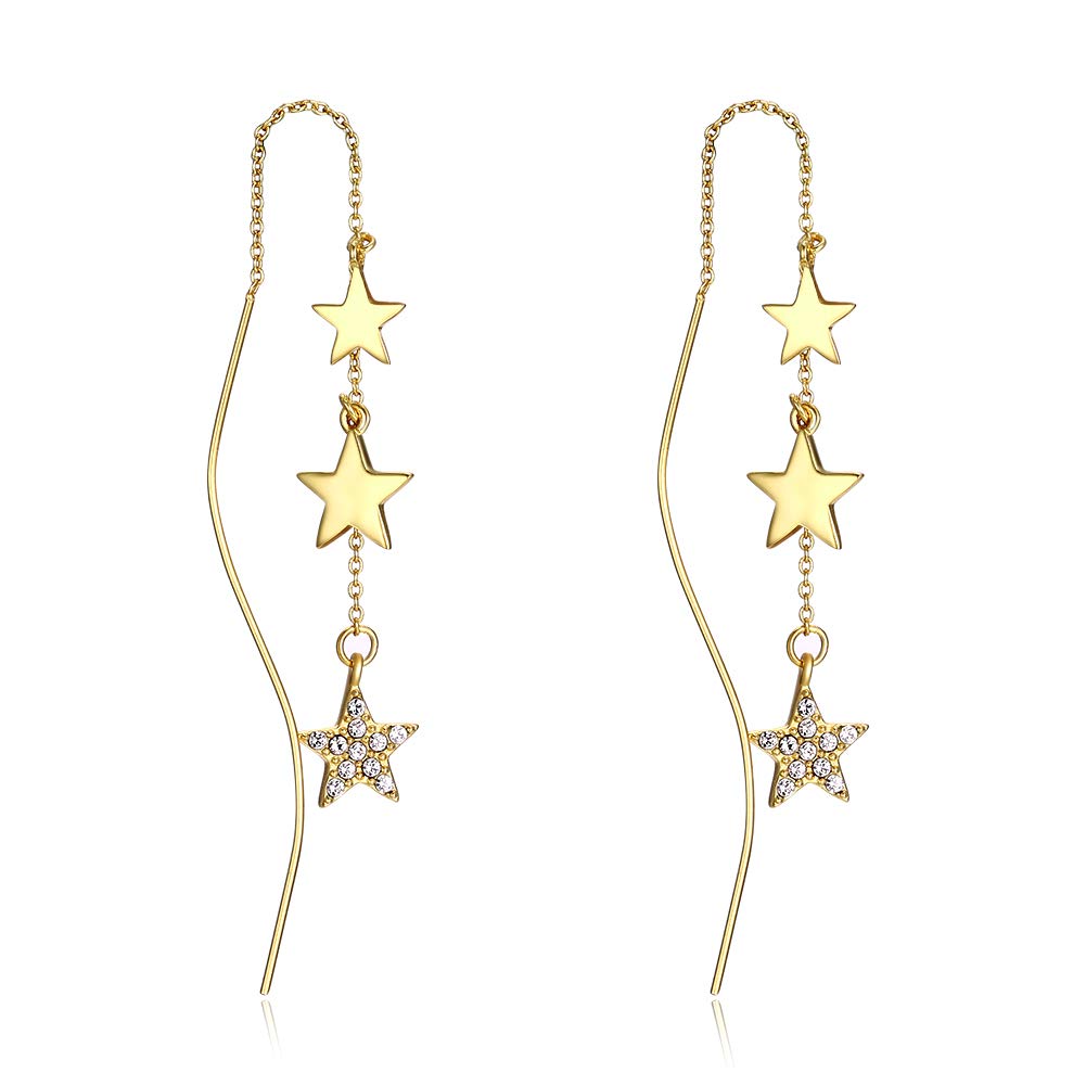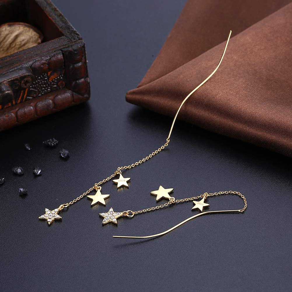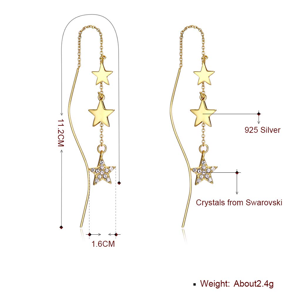Rockyu スター ピアス レディース スワロフスキー×925シルバー製 ロングチェーンピアス ゴールド仕上げ