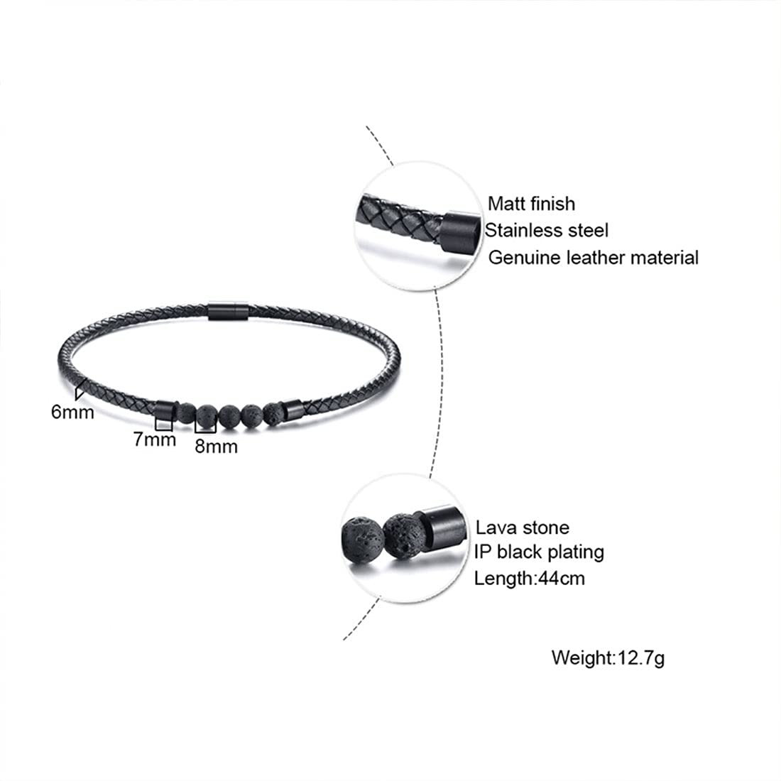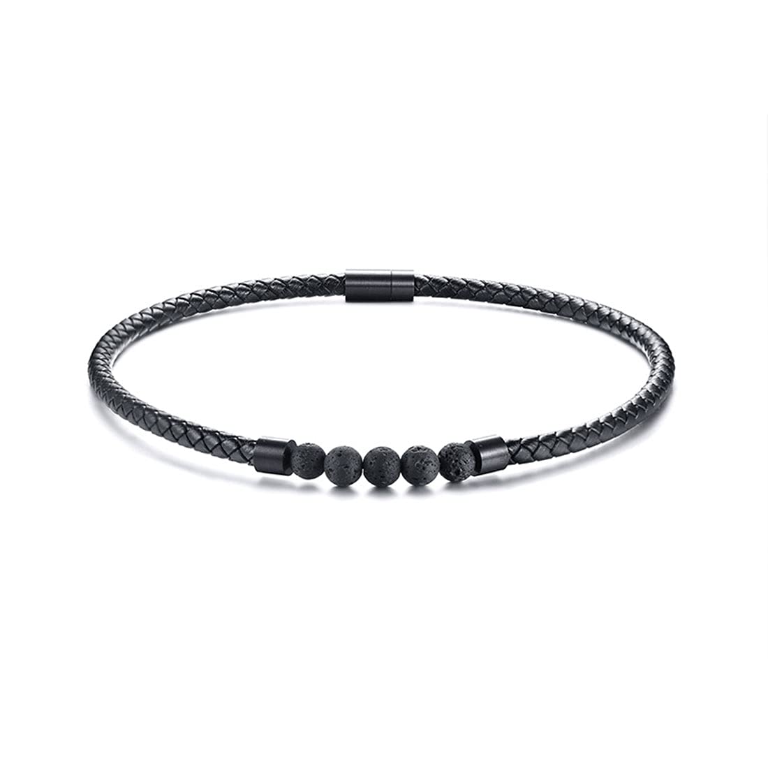 首元に秘めた野性味と洗練を。Rockyuのメンズチョーカーネックレスは、マット仕上げのIPブラックステンレスと、天然溶岩石ビーズ、編み込みレザーの異素材を融合させた一本。シンプルなのに、どこか野心的。無駄を削ぎ落としたデザインの中に、男の色気が宿ります。