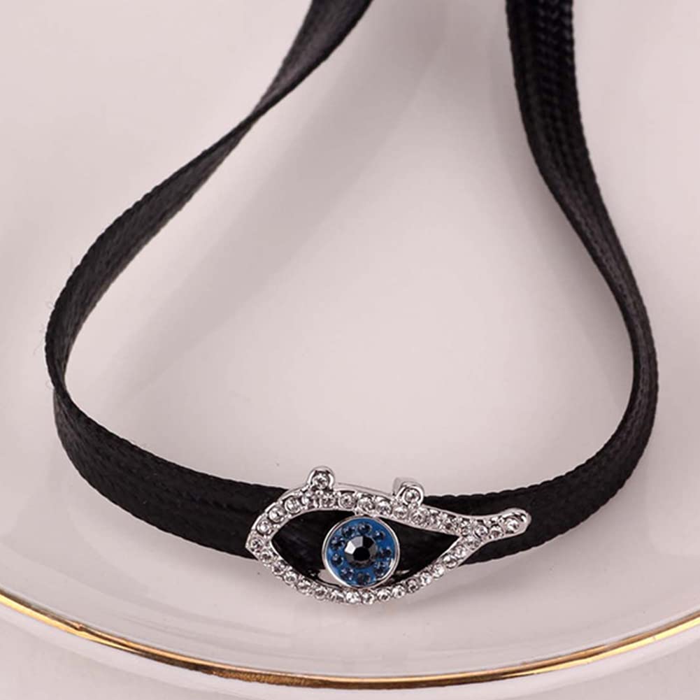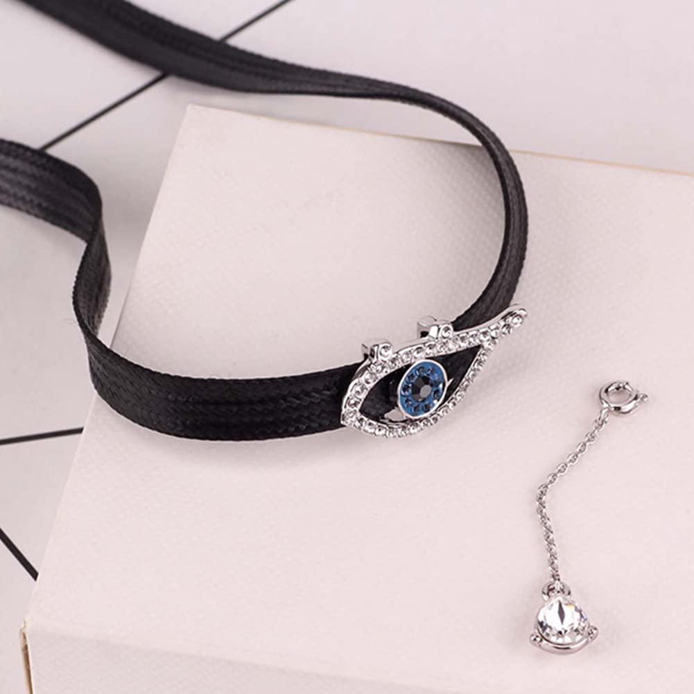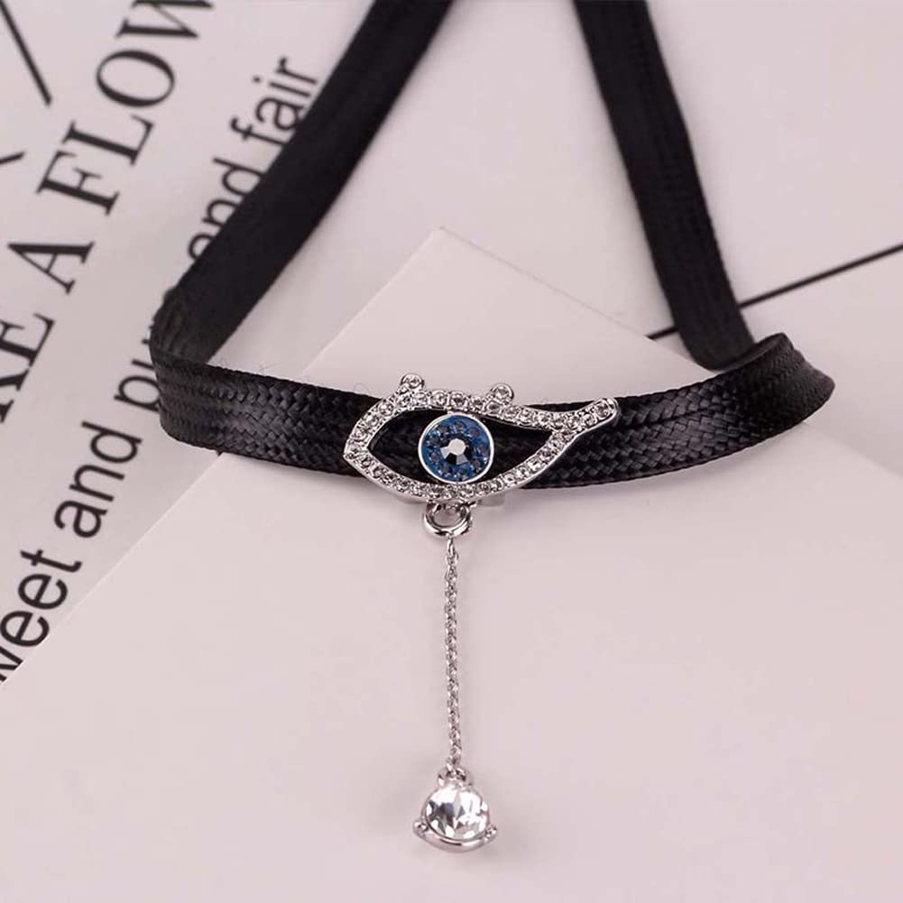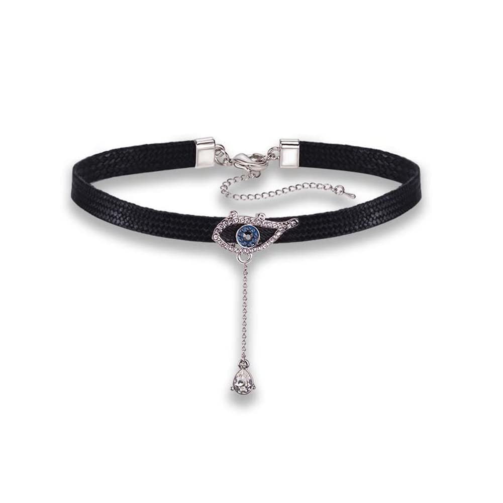 Rockyu チョーカー レディース 黒 レザー 悪魔の目 ジルコニア 雫ペンダント